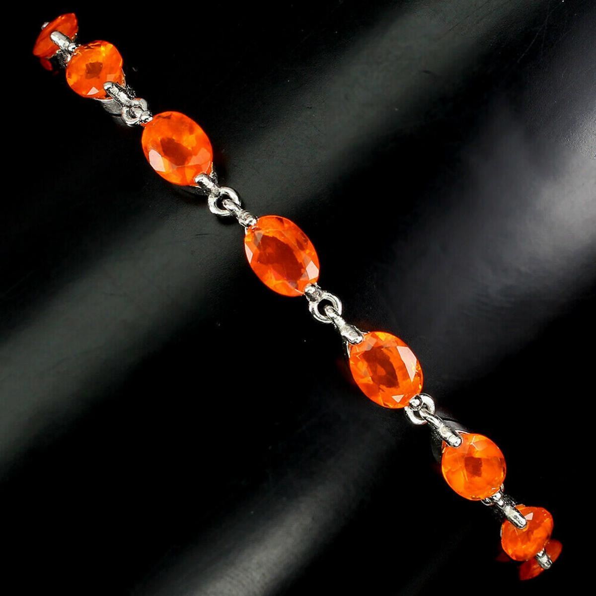 925 STERLING SILVER;PLATE-14K WHITE GOLD;LENGTH (INCHES)7.5;MAIN STONE-ORANGE FIRE OPAL;TOTAL WEIGHT-7.86 GRAM (TOTAL WEIGHT OF SILVER + STONE)DIMENSION-* STONE 7.0 X 5.0 MM. * TOTAL LENGTH 7.5 INCHES. * FACE BRACELET -165.0 X 5.0 MM.;MAIN STONE SHAPE-OVAL CUT;MAIN STONE COLOR-TOP RICH ORANGE;CLARITY/GRADE-IF TO VVS;ORIGIN-ETHIOPIA;HARDNESS-5;