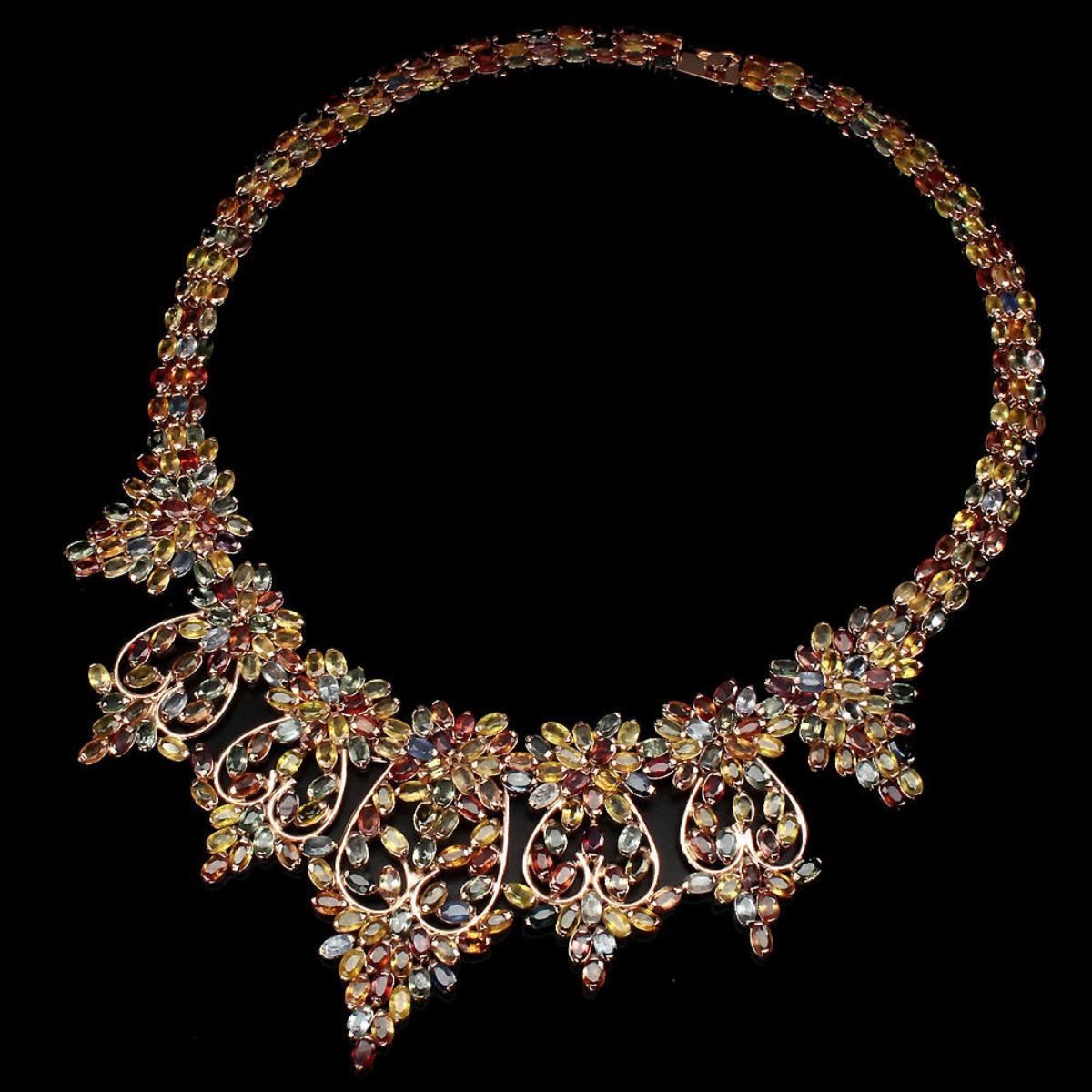 925 STERLING SILVER PLATE 14K ROSE GOLD;LENGTH (INCHES)17; MAIN STONE SAPPHIRE;TOTAL WEIGHT 487.94 CT (TOTAL WEIGHT OF SILVER + STONE)DIMENSION* STONE 4.0 X 3.0 TO 5.0 X 3.0 MM. * STONES PART LENGTH 410.0 X 57.0 MM.;MAIN STONE SHAPEOVAL CUT;MAIN STONE COLORMULTI-COLOR;CLARITY/GRADEIF TO VVS;LUSTERLUXURIOUS;ORIGIN - AFRICA;HARDNESS 9