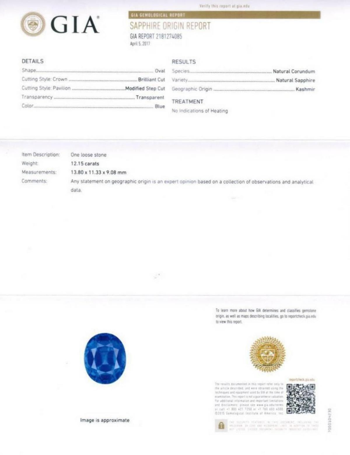 Natural Stunning Kashmir Sapphire 12.15 Carats - Untreated.....Top Quality.....VVS; ....from the best Kashmir Mines... Origin - Kashmir.....Certified by GIA Lab