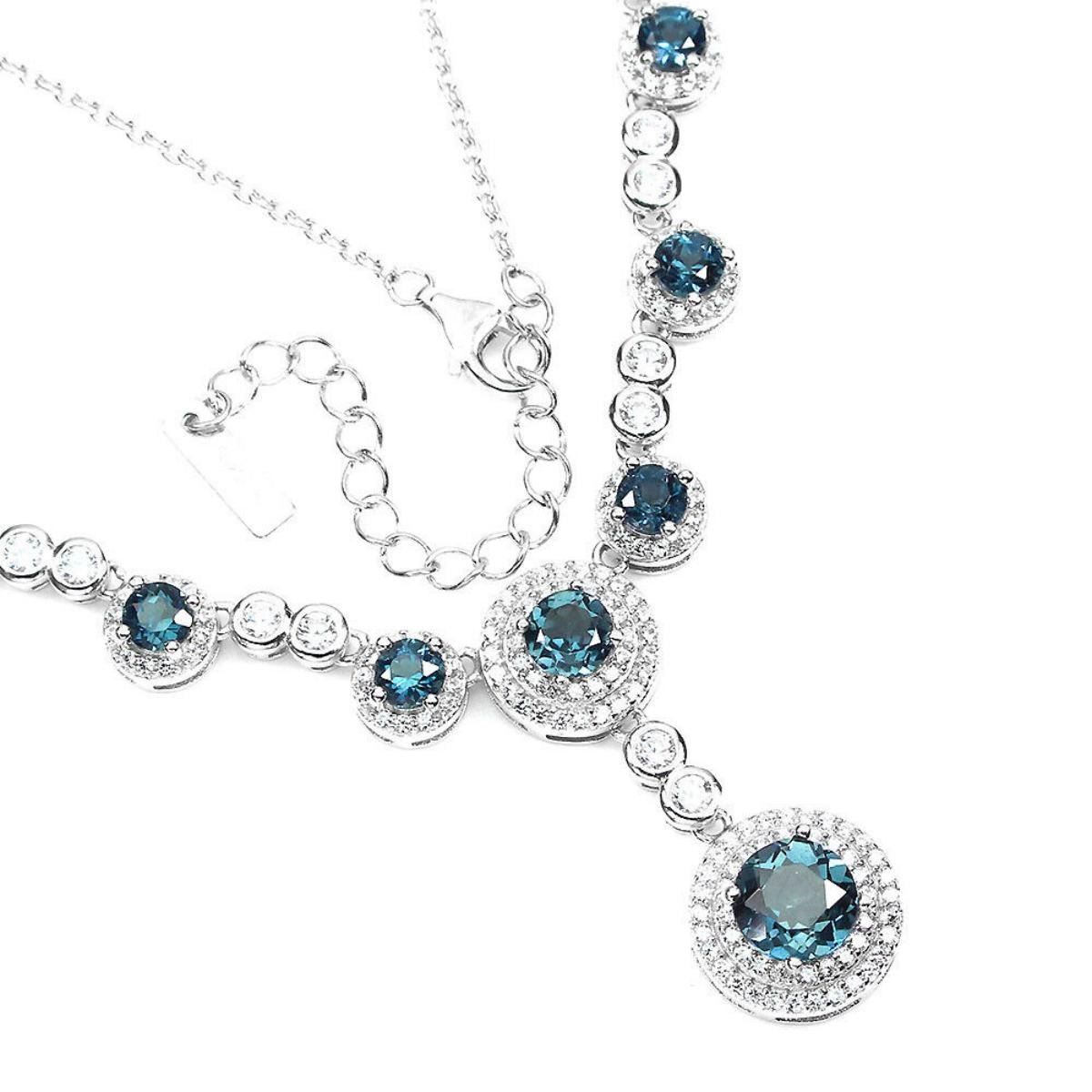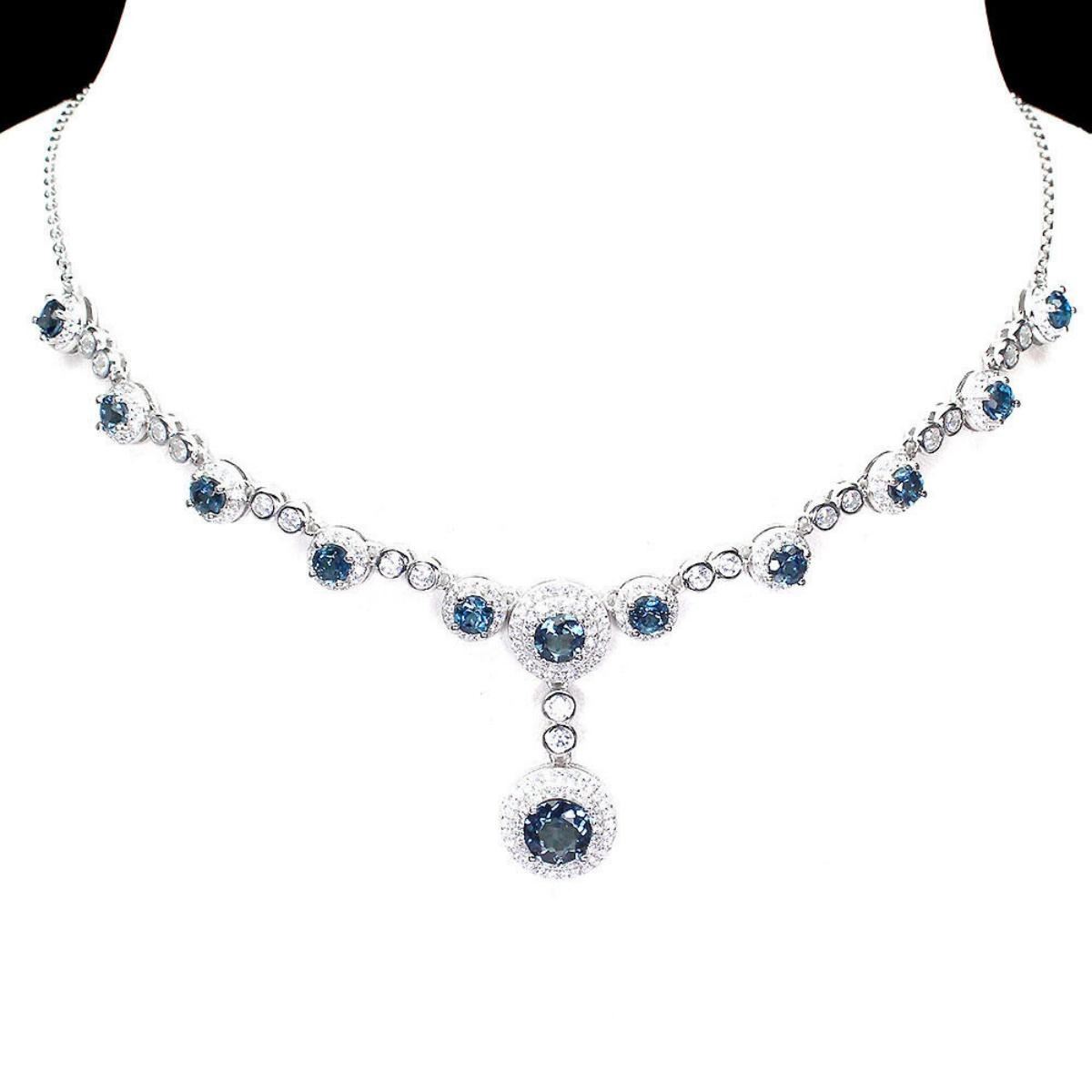 925 STERLING SILVER;PLATE-14K WHITE GOLD;LENGTH (INCHES)17.5;MAIN STONE-LONDON BLUE TOPAZ;TOTAL WEIGHT-13.35 GRAM (TOTAL WEIGHT OF SILVER + STONE)DIMENSION-* STONE 4.0 TO 7.0 MM.;* TOTAL LENGTH -17.5 INCHES.;* STONES PART LENGTH -140.0 X 31.0 MM.;MAIN STONE SHAPE-ROUND CUT;MAIN STONE COLOR- LONDON BLUE;CLARITY/GRADE-IF TO VVS;TREATMENT-IRRADIATED;ORIGIN-AFRICA;HARDNESS-8;