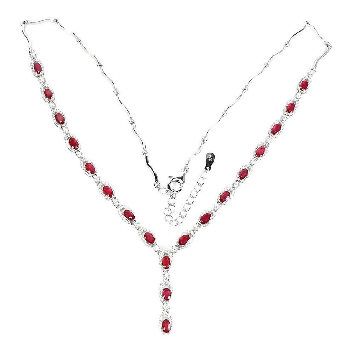 925 STERLING SILVER;PLATE-14K WHITE GOLD;LENGTH (INCHES)18;MAIN STONE-RUBY;TOTAL WEIGHT-17.7 GRAM (TOTAL WEIGHT OF SILVER + STONE)DIMENSION-* STONE 5.0 X 3.0 MM. * CZ 1.0 TO 2.0 MM. * TOTAL LENGTH 18.0 INCHES. * STONES PART LENGTH 200.0 X 31.0 MM.MAIN STONE SHAPE-OVAL CUT;MAIN STONE COLOR- BLOOD RED;CLARITY/GRADE-TRANSPARENT;TREATMENT-Yes;ORIGIN-MADAGASCAR;HARDNESS-9;