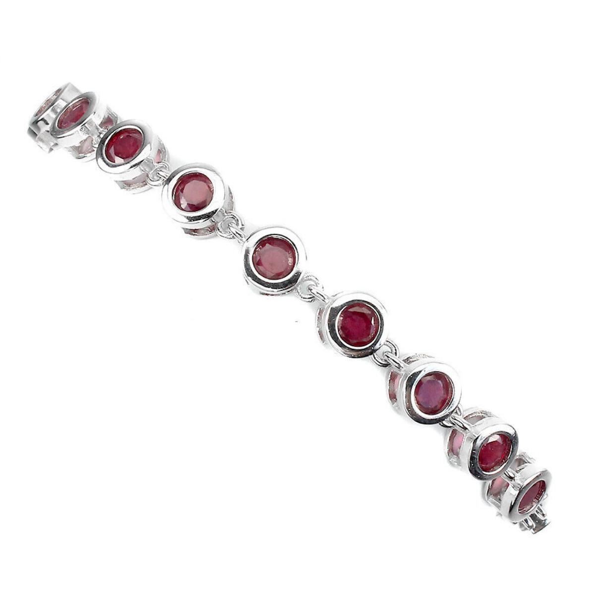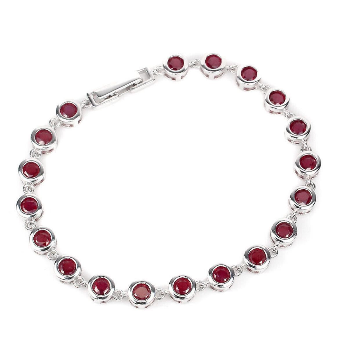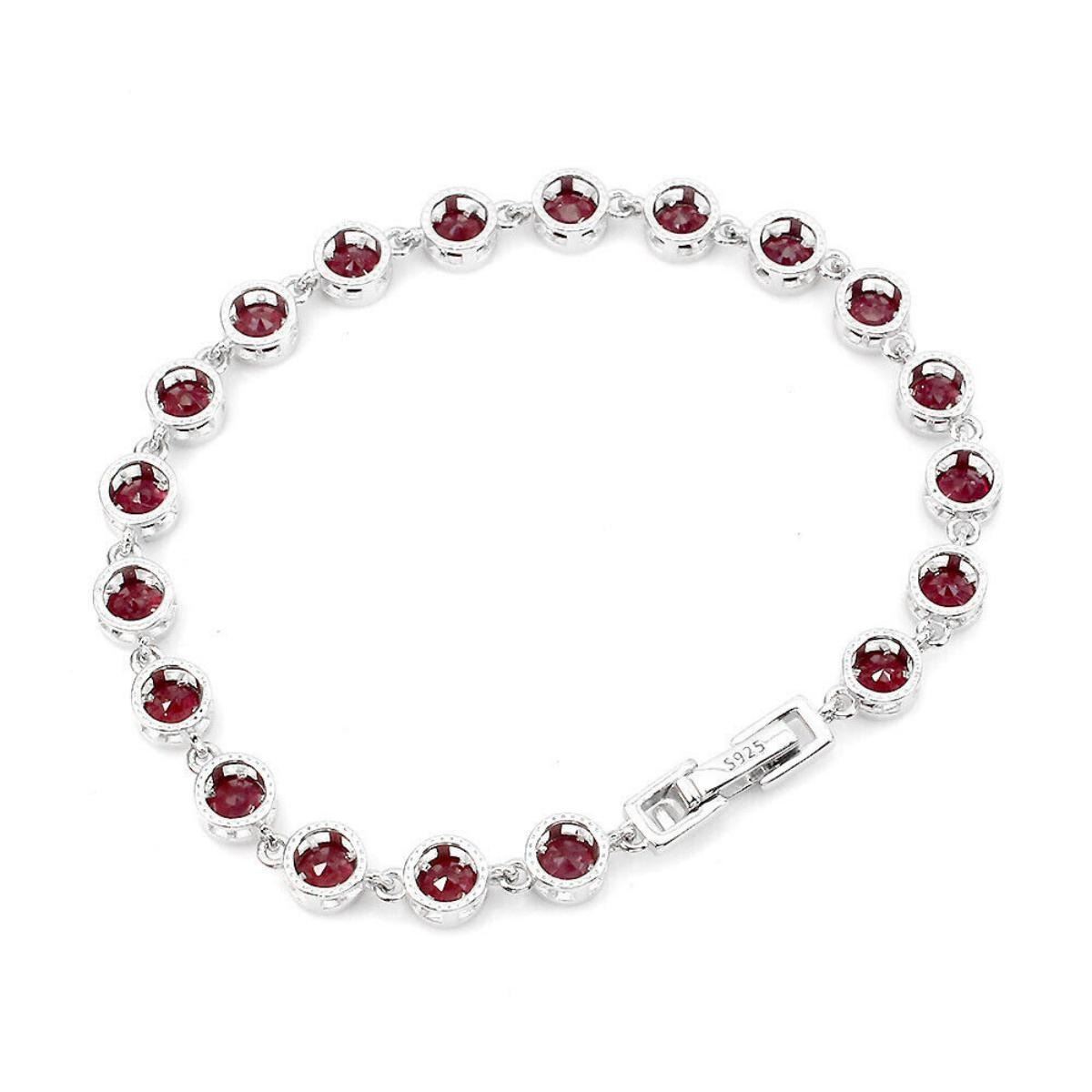 925 STERLING SILVER;PLATE-14K WHITE GOLD;LENGTH (INCHES)7;MAIN STONE-RUBY;TOTAL WEIGHT-9.78 GRAM (TOTAL WEIGHT OF SILVER + STONE)DIMENSION-* STONE 4.0 MM. * TOTAL LENGTH 7.0 INCHES. * FACE BRACELET- 165.0 X 6.0 MM.;MAIN STONE SHAPE-ROUND CUT;MAIN STONE COLOR- BLOOD RED;TREATMENT-Yes;ORIGIN-MADAGASCAR;HARDNESS-9;