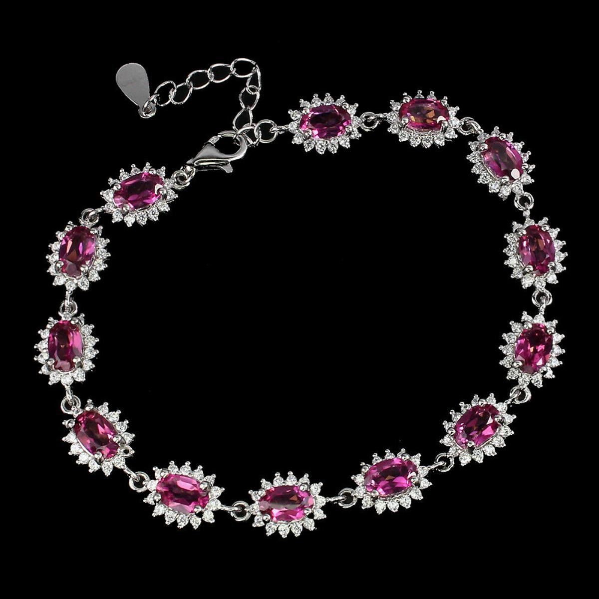 Natural Stunning Pink Topaz Bracelet....Metal925 sterling silver with 14k white gold plated....Total weight of bracelet - 53 Carats; Total length 8 inches...adjustable length from 6- 8 inches; Natural Pink Topaz - standard treatment...clarity - Flawless/ VVS; Origin - Brazil