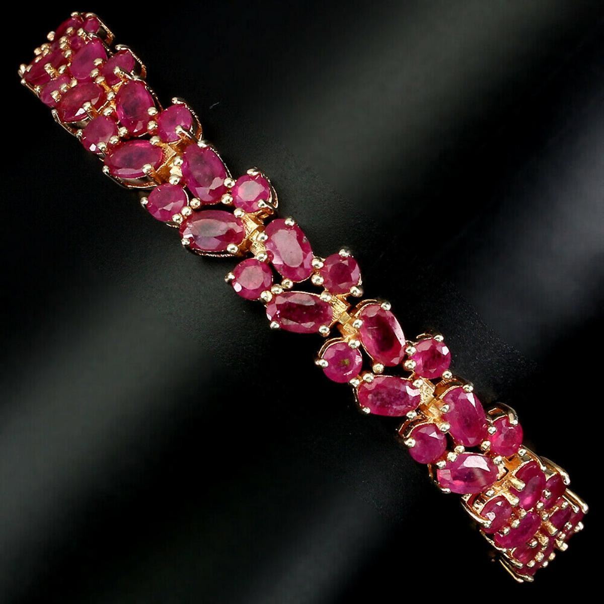 925 STERLING SILVER;PLATE-14K ROSE GOLD;LENGTH- (INCHES)9;MAIN STONE-RUBY;TOTAL WEIGHT-11.83 GRAM (TOTAL WEIGHT OF SILVER + STONE)DIMENSION-* STONE 3.0 TO 5.0 X 3.0 MM. * TOTAL LENGTH 9.0 INCHES. * FACE BRACELET 105.0 X 8.0 MM.;MAIN STONE SHAPE-OVAL CUT;MAIN STONE COLOR- BLOOD RED;TREATMENT-Yes;ORIGIN-MADAGASCARHARDNESS-9