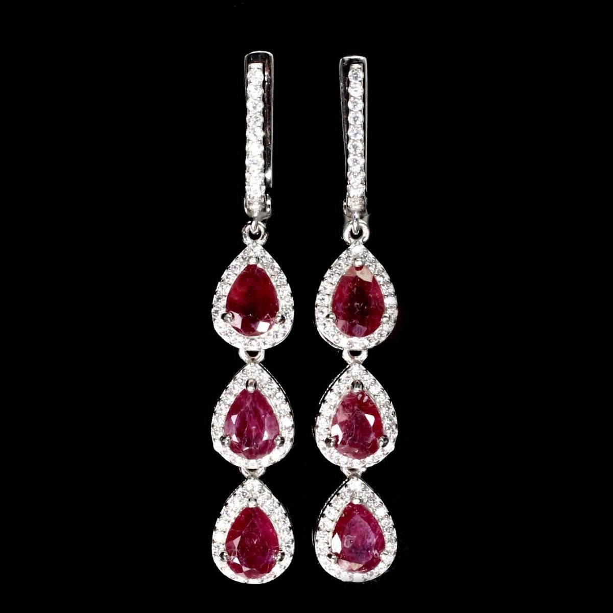 925 STERLING SILVER;PLATE-14K WHITE GOLD;MAIN STONE-RUBY;TOTAL WEIGHT-7.27 GRAM (TOTAL WEIGHT OF SILVER + STONE)DIMENSION-* STONE 7.0 X 5.0 MM. * CZ 1.0 MM. * FACE EARRINGS 45.0 X 7.0 MM.;MAIN STONE SHAPE-PEAR CUT;MAIN STONE COLOR-TOP BLOOD RED;TREATMENT-Yes;ORIGIN-MADAGASCAR;HARDNESS9;