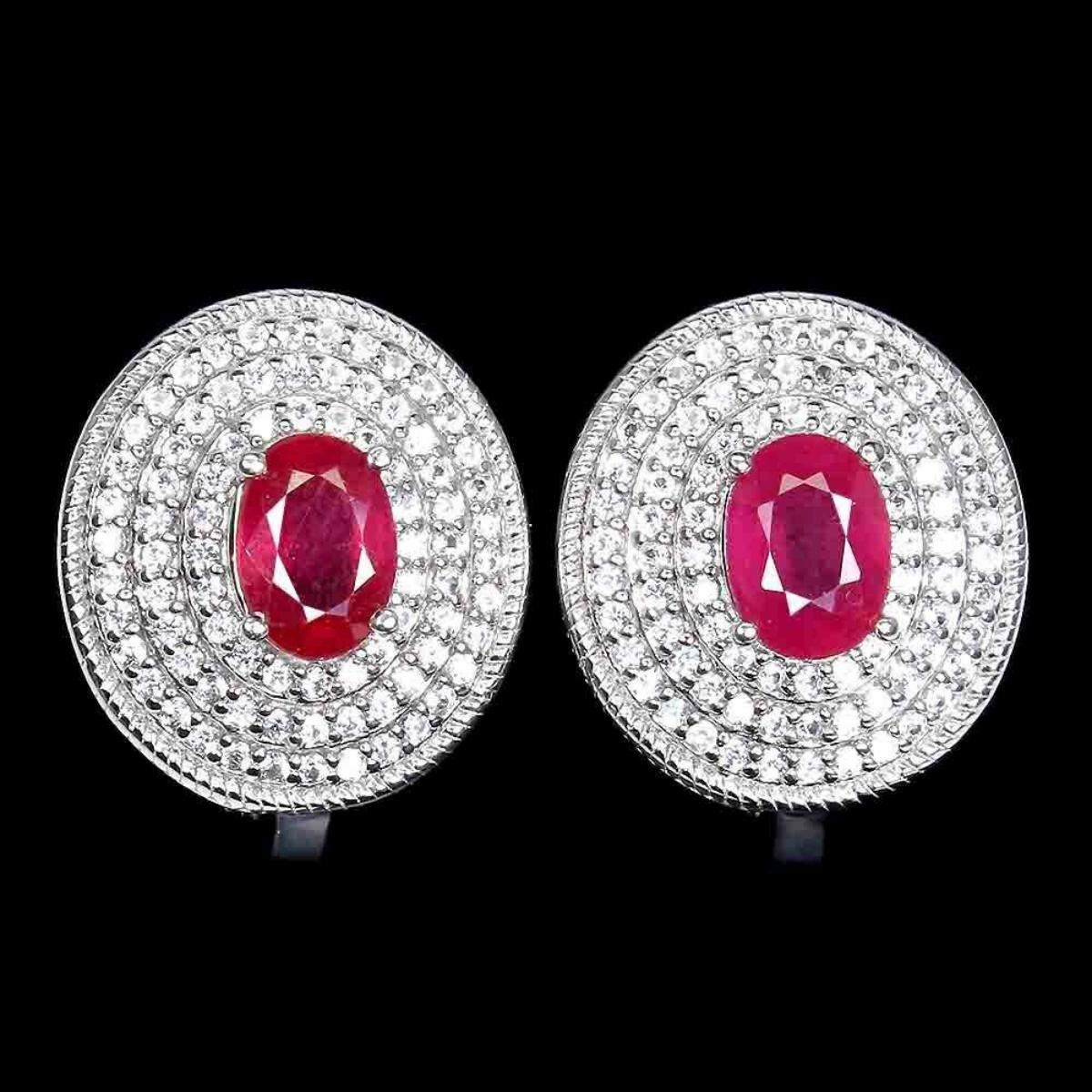 925 STERLING SILVER;PLATE-14K WHITE GOLD;MAIN STONE-RUBY;OTHER GEMS-WHITE TOPAZ;TOTAL WEIGHT-7.39 GRAM (TOTAL WEIGHT OF SILVER + STONE)DIMENSION-* STONE 1.0 TO 7.0 X 5.0 MM.;* FACE EARRINGS- 16.0 X 14.0 MM.;MAIN STONE SHAPE-OVAL CUT;MAIN STONE COLOR- BLOOD RED;TREATMENT-Yes;ORIGIN-MADAGASCAR;HARDNESS-9.0;