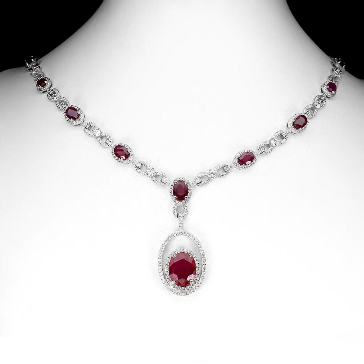 925 STERLING SILVER;PLATE-14K WHITE GOLD;LENGTH (INCHES)-18;MAIN STONE-RUBY;TOTAL WEIGHT-23.14 GRAM (TOTAL WEIGHT OF SILVER + STONE);DIMENSION-* STONE 5.0 X 4.0 TO 11.0 X 9.0 MM.* TOTAL LENGTH 18.0 INCHES.* STONES PART LENGTH 205.0 X 40.0 MM.;MAIN STONE SHAPE-OVAL CUT;MAIN STONE COLOR- RED PINK;TREATMENT- YES;ORIGIN-MOZAMBIQUE;HARDNESS-9;
