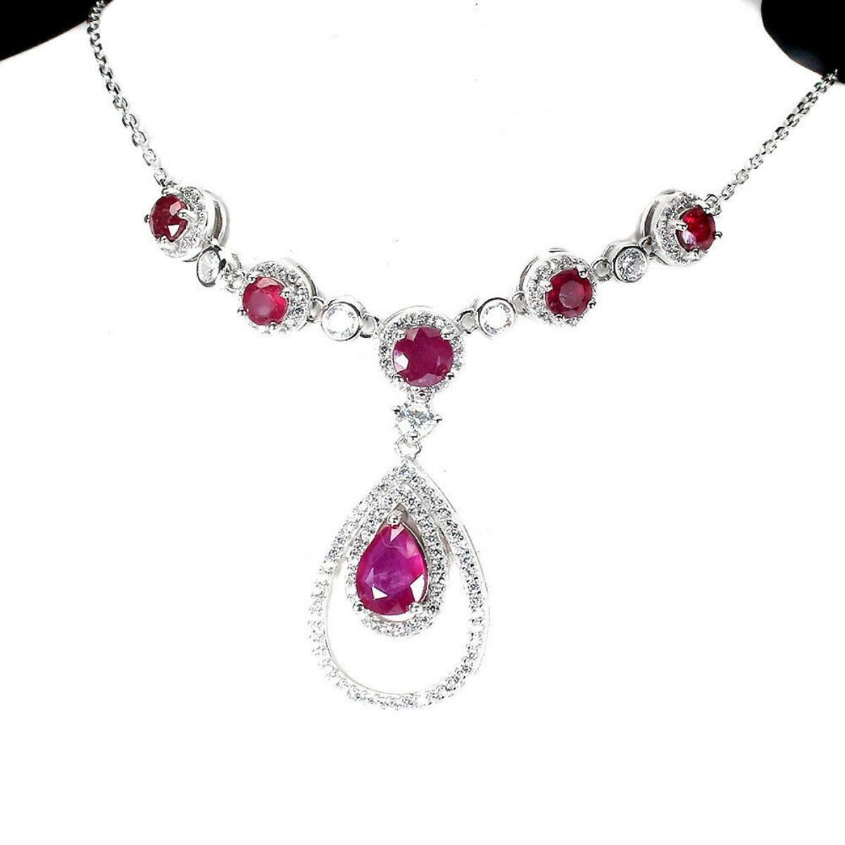925 STERLING SILVER;PLATE-14K WHITE GOLD;LENGTH- (INCHES)18;MAIN STONE-RUBY;TOTAL WEIGHT-8.5 GRAM (TOTAL WEIGHT OF SILVER + STONE)DIMENSION-* STONE 4.0 TO 8.0 X 6.0 MM. * CZ 1.0 TO 3.0 MM. * TOTAL LENGTH -18.0 INCHES. * STONES PART LENGTH 55.0 X 35.0 MM.;MAIN STONE SHAPE-PEAR CUT;MAIN STONE COLOR- BLOOD RED;TREATMENT--Yes;ORIGIN-MADAGASCAR;HARDNESS-9;