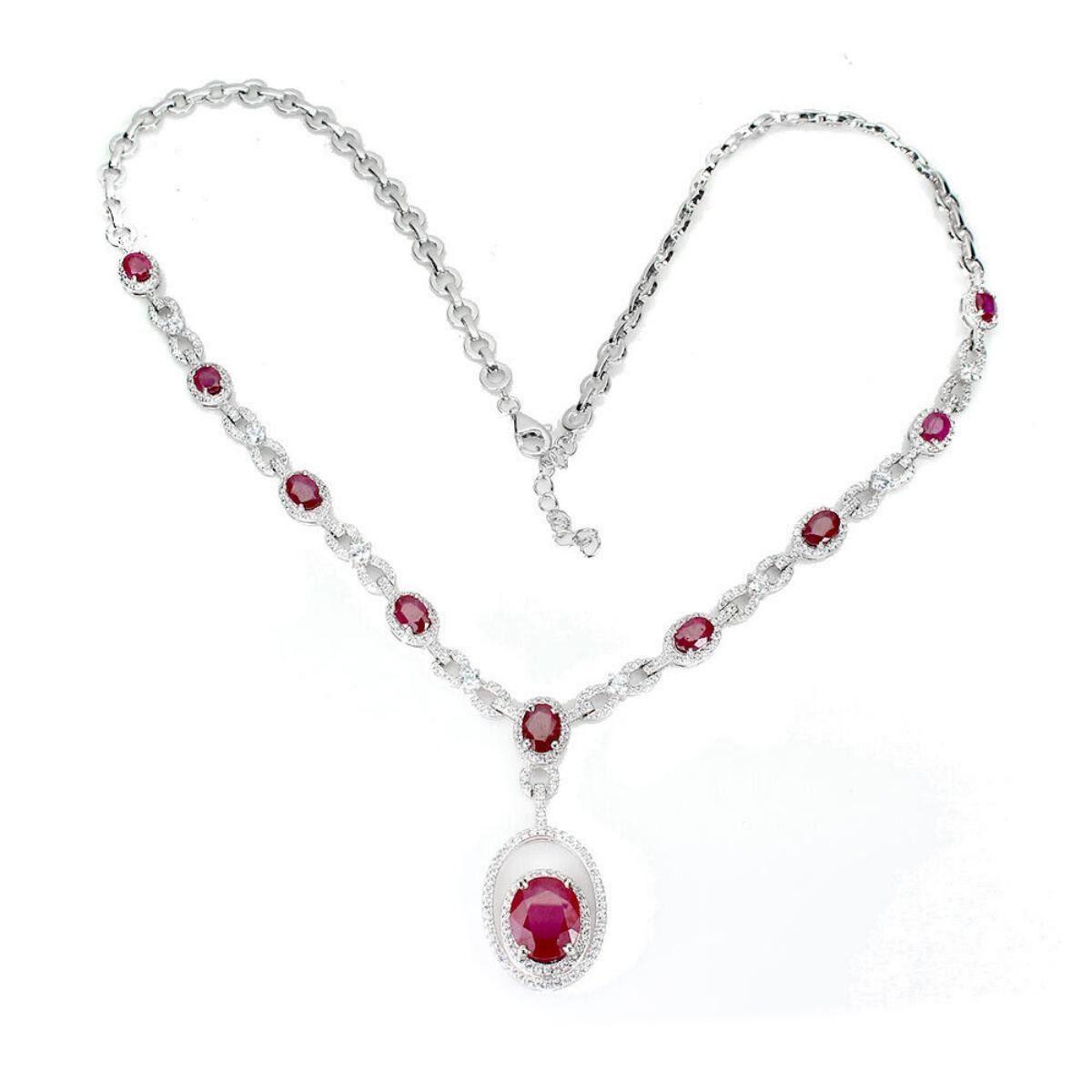 925 STERLING SILVER;PLATE-14K WHITE GOLD;LENGTH (INCHES)-18;MAIN STONE-RUBY;TOTAL WEIGHT-23.14 GRAM (TOTAL WEIGHT OF SILVER + STONE);DIMENSION-* STONE 5.0 X 4.0 TO 11.0 X 9.0 MM.* TOTAL LENGTH 18.0 INCHES.* STONES PART LENGTH 205.0 X 40.0 MM.;MAIN STONE SHAPE-OVAL CUT;MAIN STONE COLOR- RED PINK;TREATMENT- YES;ORIGIN-MOZAMBIQUE;HARDNESS-9;