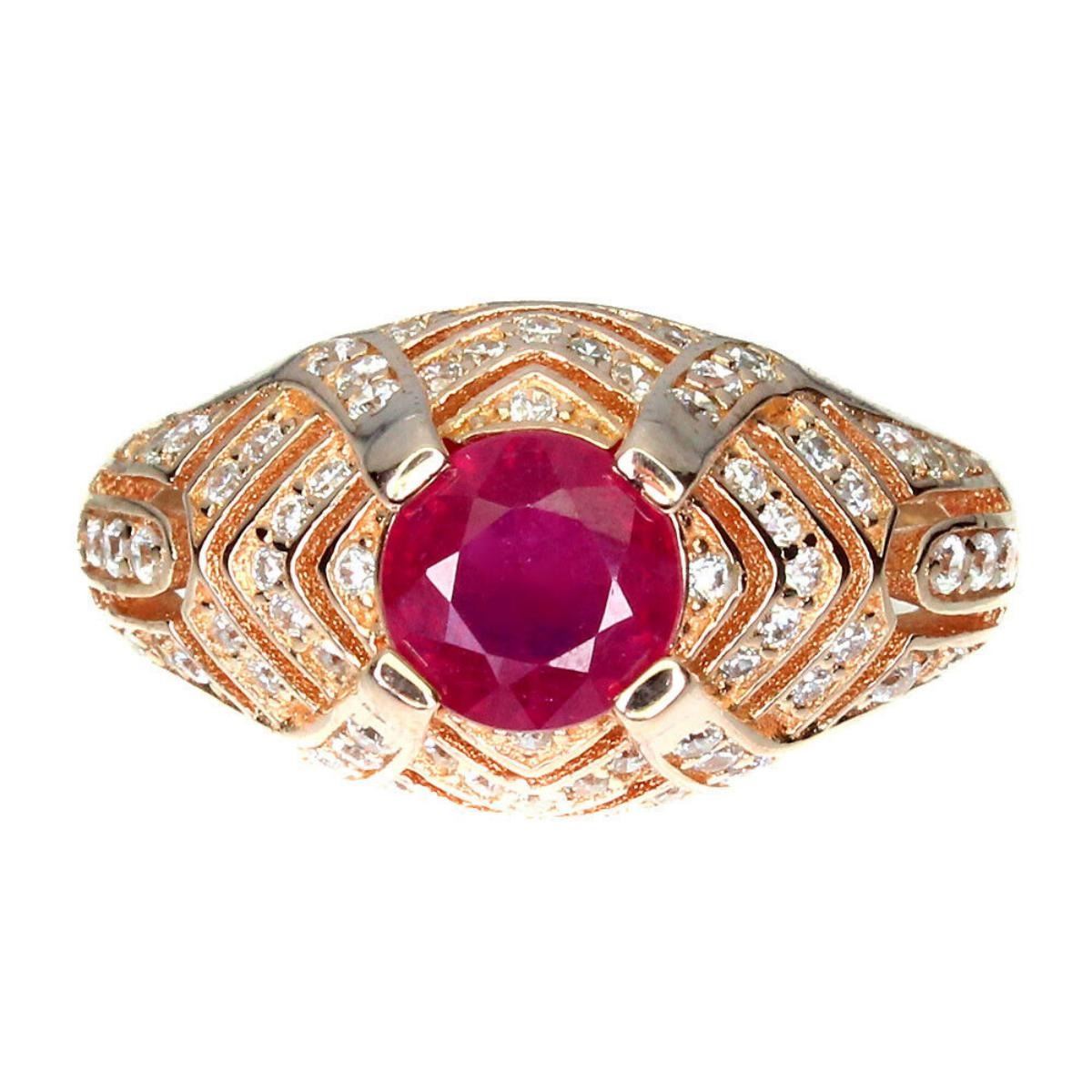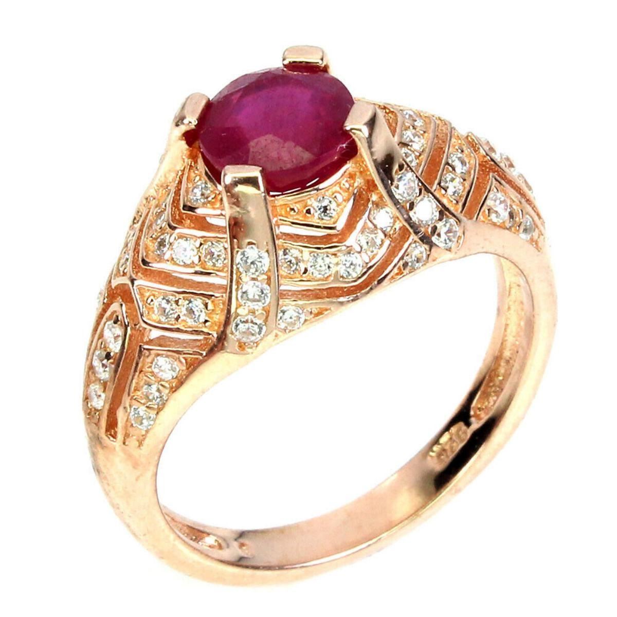 925 STERLING SILVER;PLATE-14K ROSE GOLD;RING SIZE/Resizeable-6;MAIN STONE-RUBY;TOTAL WEIGHT-4 GRAM (TOTAL WEIGHT OF SILVER + STONE)DIMENSION-* STONE 6.0 MM. * CZ 1.5 MM. * RING SIZE 6.0 * FACE RING -20.0 X 10.0 MM.;MAIN STONE SHAPE-ROUND CUT;MAIN STONE COLOR- BLOOD RED;TREATMENT--YesORIGIN-MADAGASCAR;HARDNESS-9;