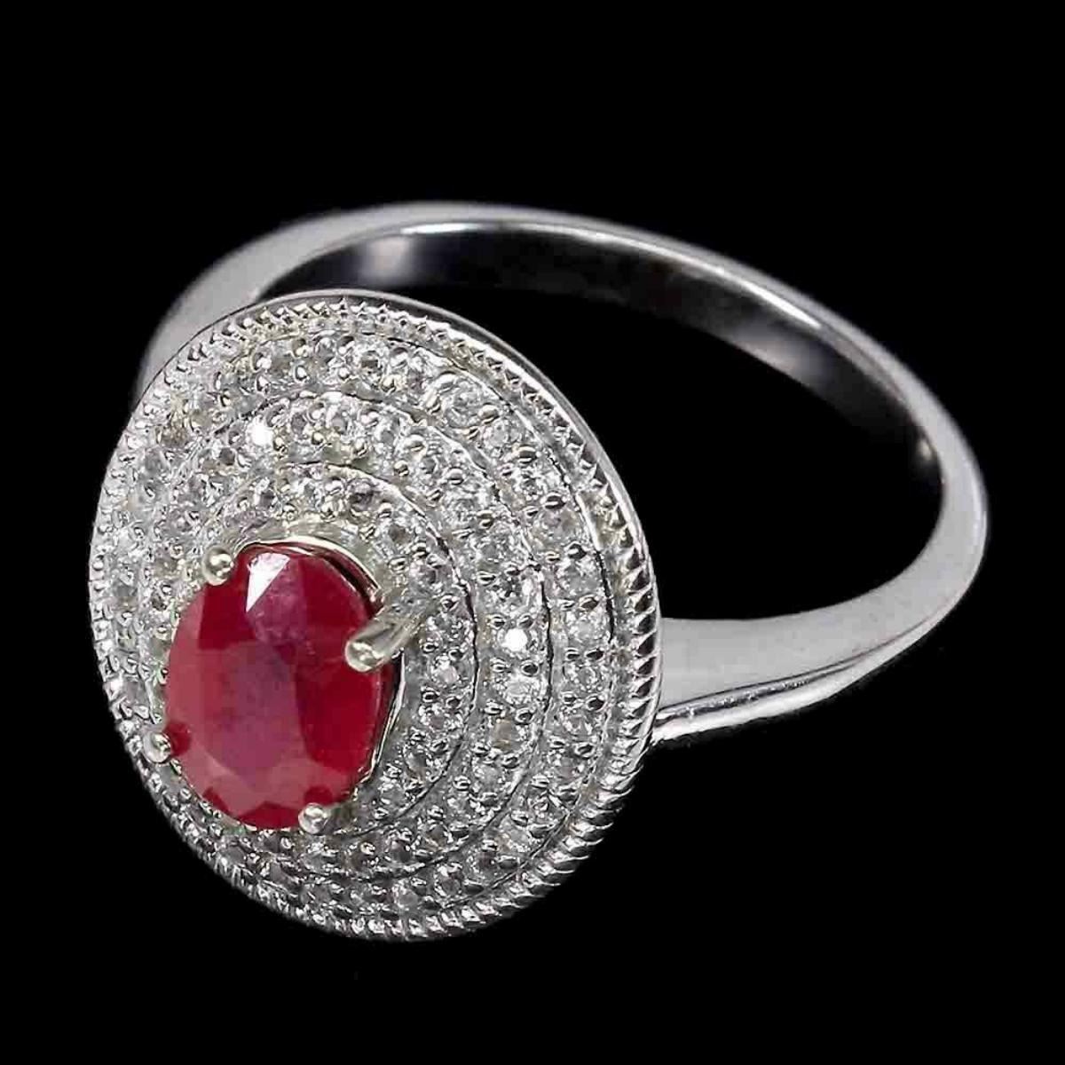 925 STERLING SILVERPLATE-14K WHITE GOLDRING SIZE/(RESIZABLE)-9 MAIN STONE-RUBYOTHER GEMS-WHITE TOPAZTOTAL WEIGHT-4.81 GRAM (TOTAL WEIGHT OF SILVER + STONE)DIMENSION-* STONE 1.0 TO 7.0 X 5.0 MM.* RING SIZE- 9.0* FACE RING- 16.0 X 14.0 MM.MAIN STONE SHAPE-OVAL CUTMAIN STONE COLOR-TOP BLOOD REDTREATMENT-Yes;ORIGIN-MADAGASCAR;HARDNESS-9.0;