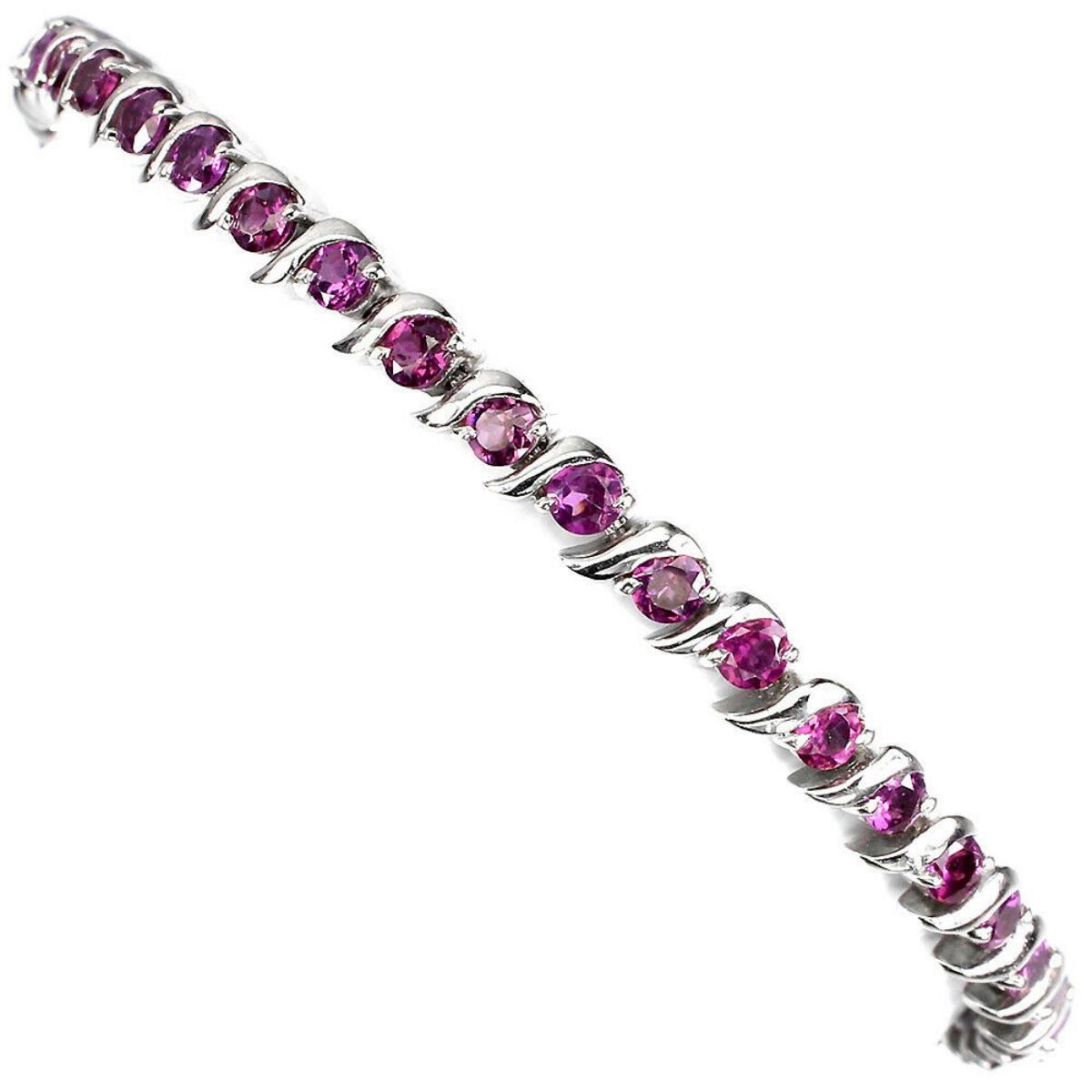 925 STERLING SILVER;PLATE-14K WHITE GOLD;LENGTH (INCHES)7.5;MAIN STONE-RHODOLITE GARNET;TOTAL WEIGHT-15.46 GRAM (TOTAL WEIGHT OF SILVER + STONE)DIMENSION-* STONE 3.0 MM. * FACE BRACELET 170.0 X 65.0 MM.MAIN STONE SHAPE-ROUND CUT;MAIN STONE COLOR-TOP RICH PINK RASPBERRY;CLARITY/GRADE-IF TO VVS;LUSTER-GORGEOUS;TREATMENT-UNHEATED;ORIGIN-AFRICA;HARDNESS-7.0 - 7.5;