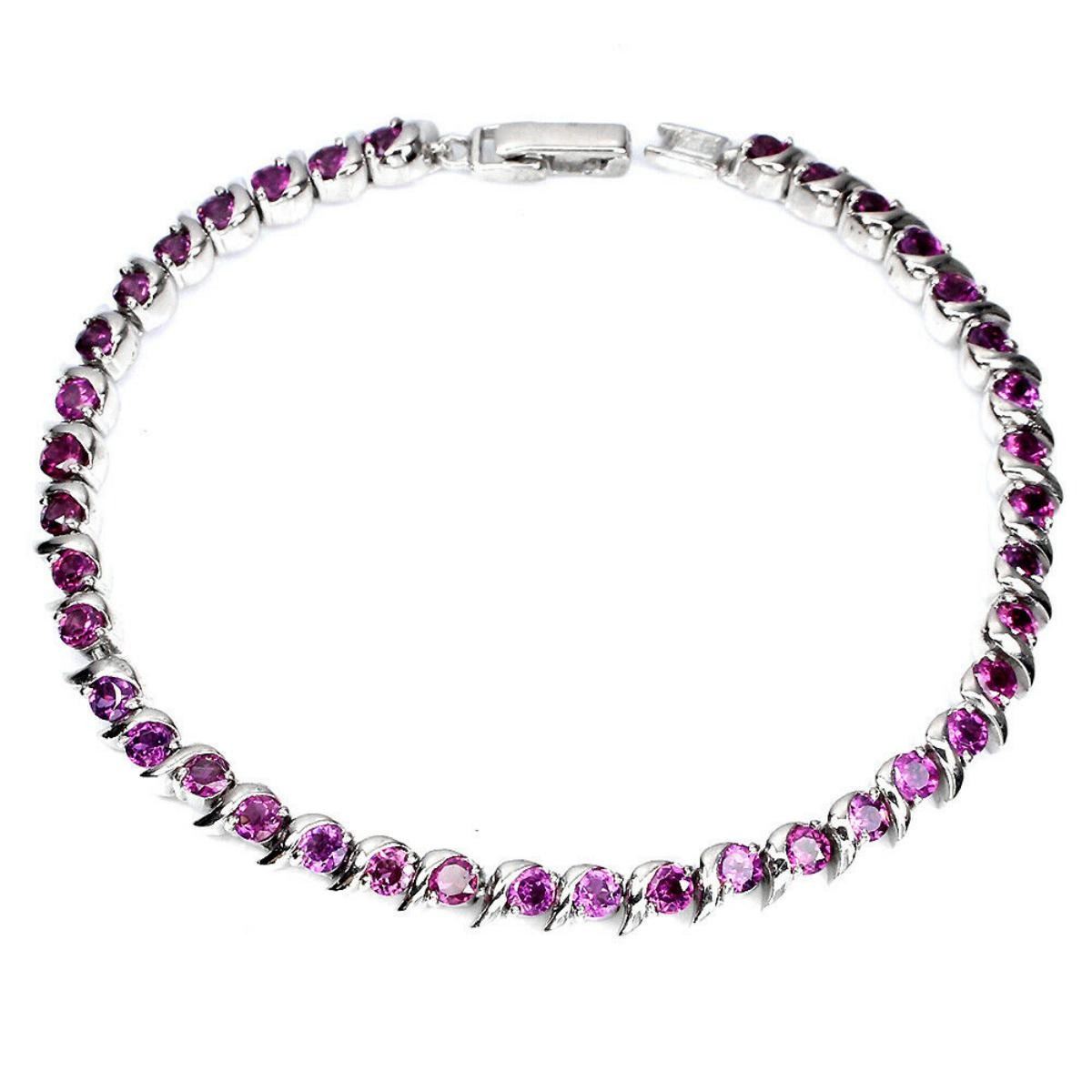 925 STERLING SILVER;PLATE-14K WHITE GOLD;LENGTH (INCHES)7.5;MAIN STONE-RHODOLITE GARNET;TOTAL WEIGHT-15.46 GRAM (TOTAL WEIGHT OF SILVER + STONE)DIMENSION-* STONE 3.0 MM. * FACE BRACELET 170.0 X 65.0 MM.MAIN STONE SHAPE-ROUND CUT;MAIN STONE COLOR-TOP RICH PINK RASPBERRY;CLARITY/GRADE-IF TO VVS;LUSTER-GORGEOUS;TREATMENT-UNHEATED;ORIGIN-AFRICA;HARDNESS-7.0 - 7.5;