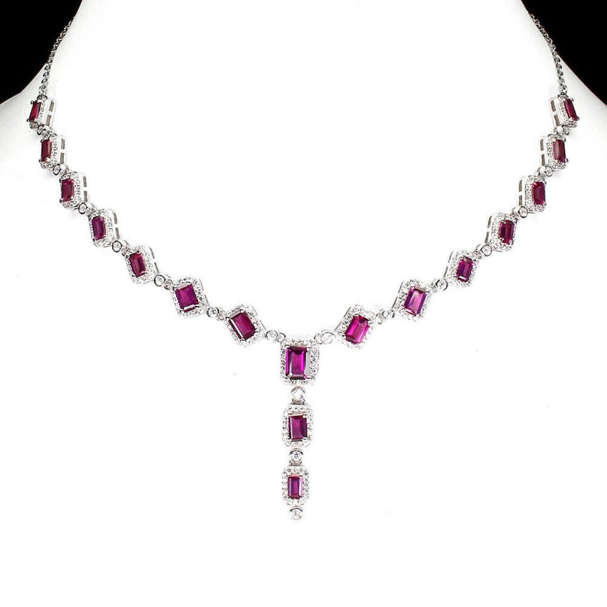 925 STERLING SILVER;PLATE-14K WHITE GOLD;LENGTH (INCHES)15.5;MAIN STONE-RHODOLITE GARNET;TOTAL WEIGHT-15.85 GRAM (TOTAL WEIGHT OF SILVER + STONE)DIMENSION-* STONE 5.0 X 3.0 TO 7.0 X 5.0 MM. * MM. * TOTAL LENGTH- 15.5 INCHES. * STONES PART LENGTH 185.0 X 38.0 MM.;MAIN STONE SHAPE-OCTAGON CUT;MAIN STONE COLOR-PINK RASPBERRY;CLARITY/GRADE-IF TO VVS;TREATMENT-UNHEATED;ORIGIN-AFRICA;HARDNESS-7;