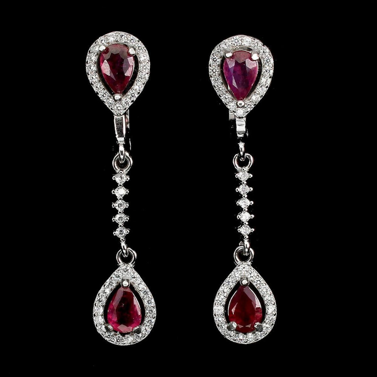 925 STERLING SILVER;PLATE-14K WHITE GOLD;MAIN STONE-RUBY;TOTAL WEIGHT-4.12 GRAM (TOTAL WEIGHT OF SILVER + STONE)DIMENSION-* STONE 6.0 X 4.0 MM. * CZ 1.0 MM. * FACE EARRINGS 37.0 X 8.0 MM.MAIN STONE SHAPE-PEAR CUT;MAIN STONE COLOR-TOP BLOOD RED;TREATMENT--Yes;ORIGIN-MADAGASCAR;