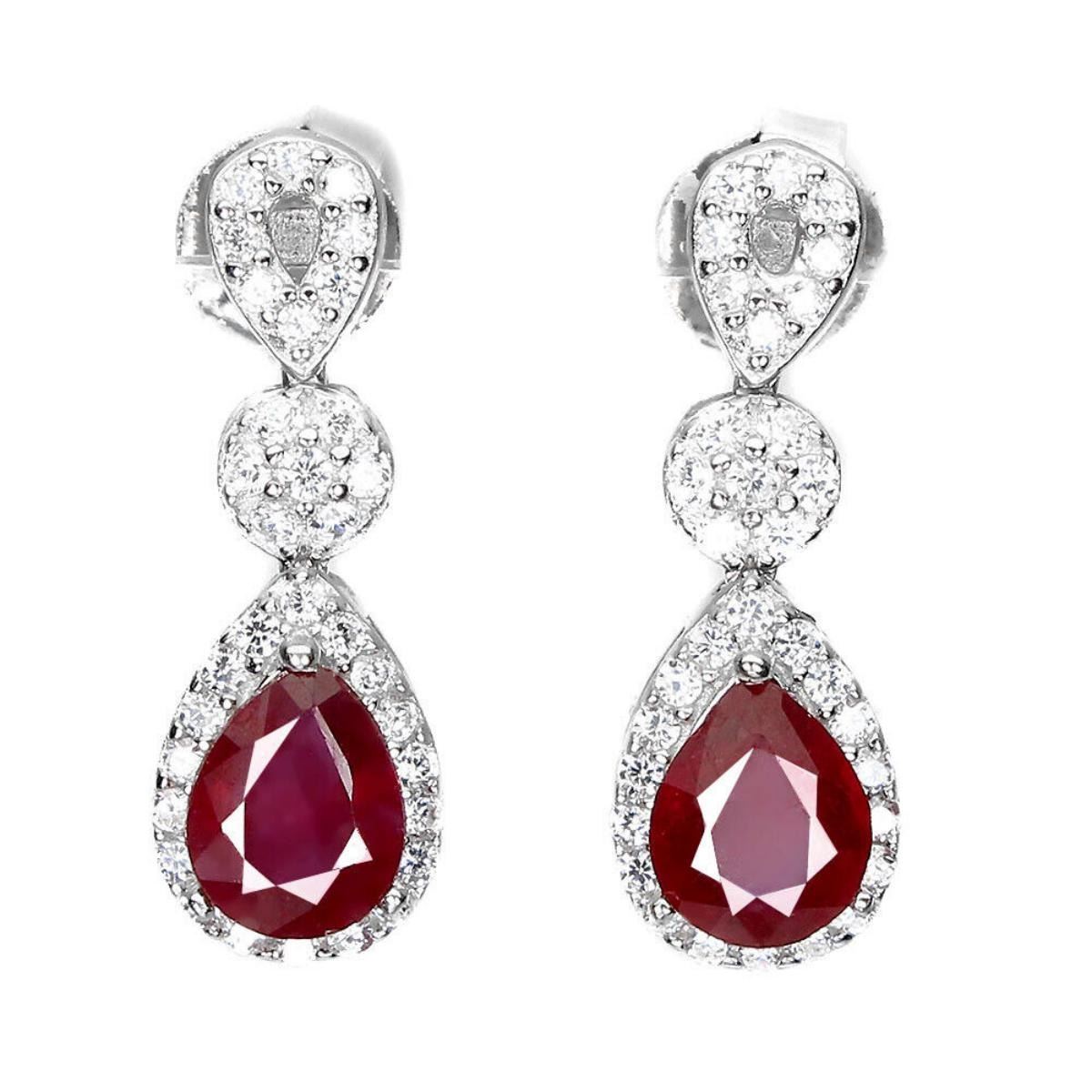925 STERLING SILVER;PLATE-14K WHITE GOLD;MAIN STONE-RUBY;TOTAL WEIGHT-2.37 GRAM (TOTAL WEIGHT OF SILVER + STONE);DIMENSION-* STONE 6.0 X 5.0 MM.* FACE EARRINGS 18.0 X 6.0 MM.;MAIN STONE SHAPE-PEAR CUT;MAIN STONE COLOR- BLOOD RED;TREATMENT - YES;ORIGIN-MADAGASCAR;HARDNESS-9;