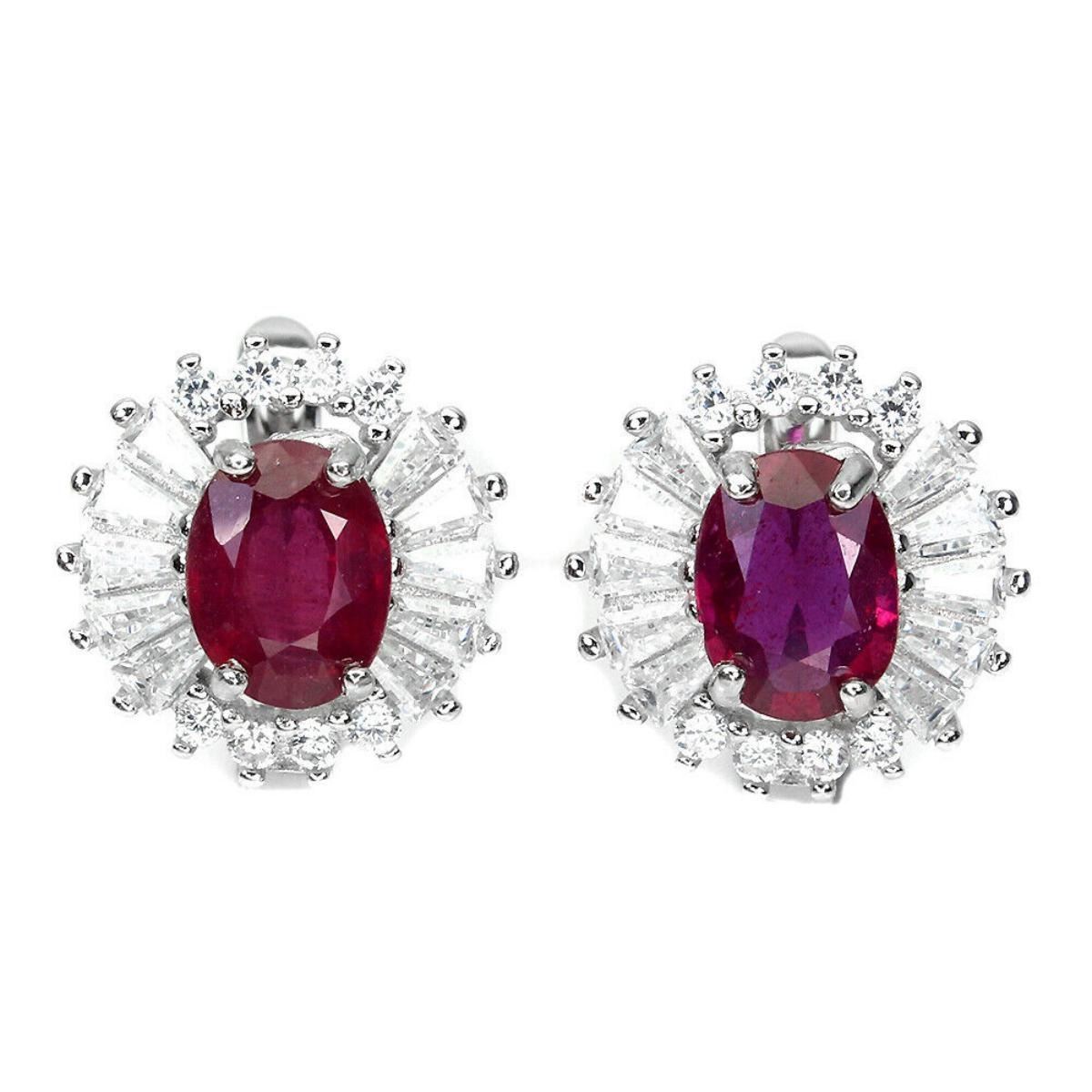 925 STERLING SILVER;PLATE-14K WHITE GOLD;MAIN STONE-RUBY;TOTAL WEIGHT-5.87 GRAM (TOTAL WEIGHT OF SILVER + STONE);DIMENSION-* STONE 8.0 X 6.0 MM.* FACE EARRINGS 14.0 X 13.0 MM.;MAIN STONE SHAPE-OVAL CUT;MAIN STONE COLOR - BLOOD RED;TREATMENT-YES;ORIGIN-MADAGASCAR;HARDNESS-9;