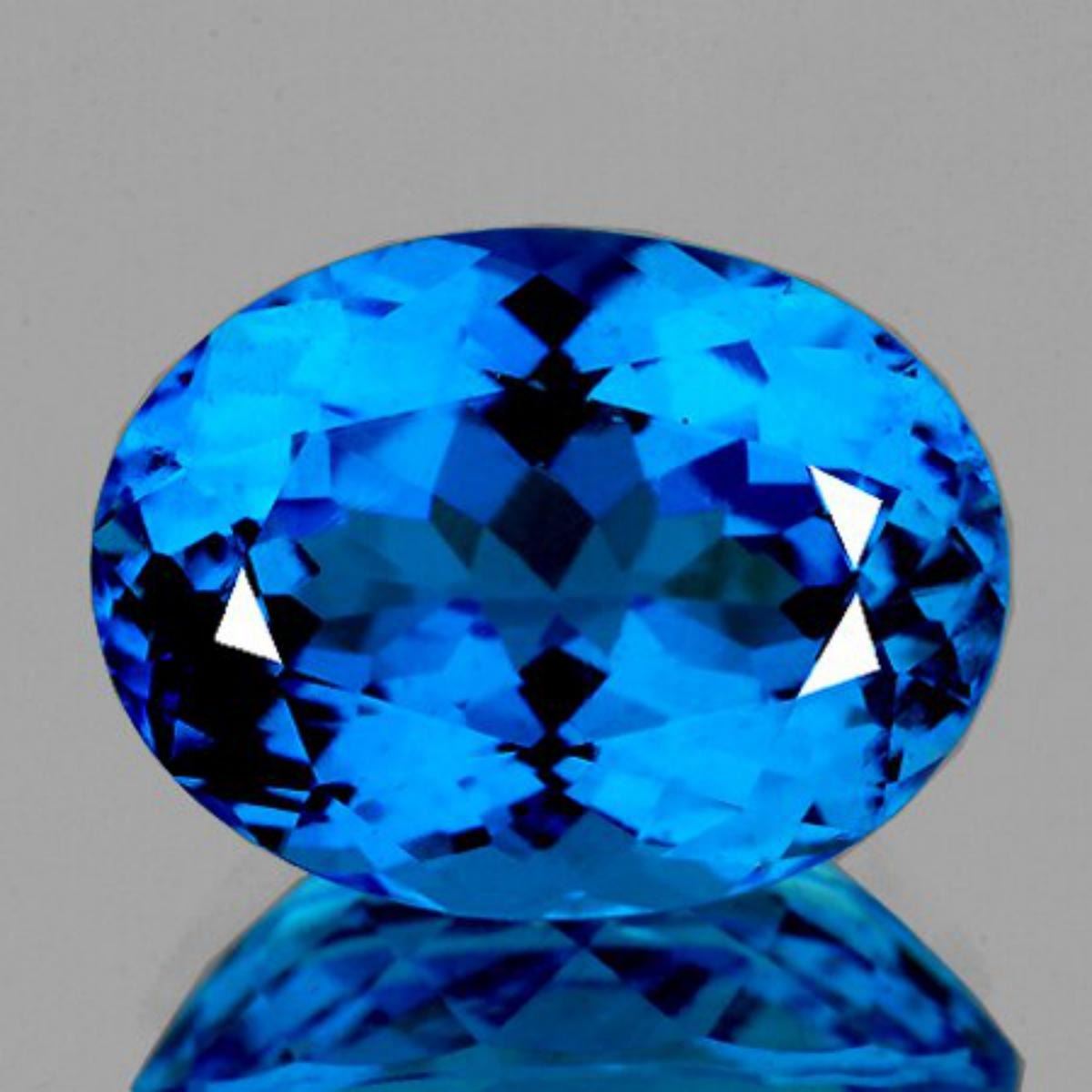 Natural Topaz; SHAPE : Oval; SIZE ( L x W x D ) : 13.28 x 9.62 x 6.74 mm; QUANTITY : 1 piece; COLOR : Intense Swiss Blue Best AAA Color; CLARITY : Flawless-VVS1 AAA Grade; ORIGIN : Brazil; HARDNESS : 8; LUSTER : Excellent!!! TREATMENT : Heated;