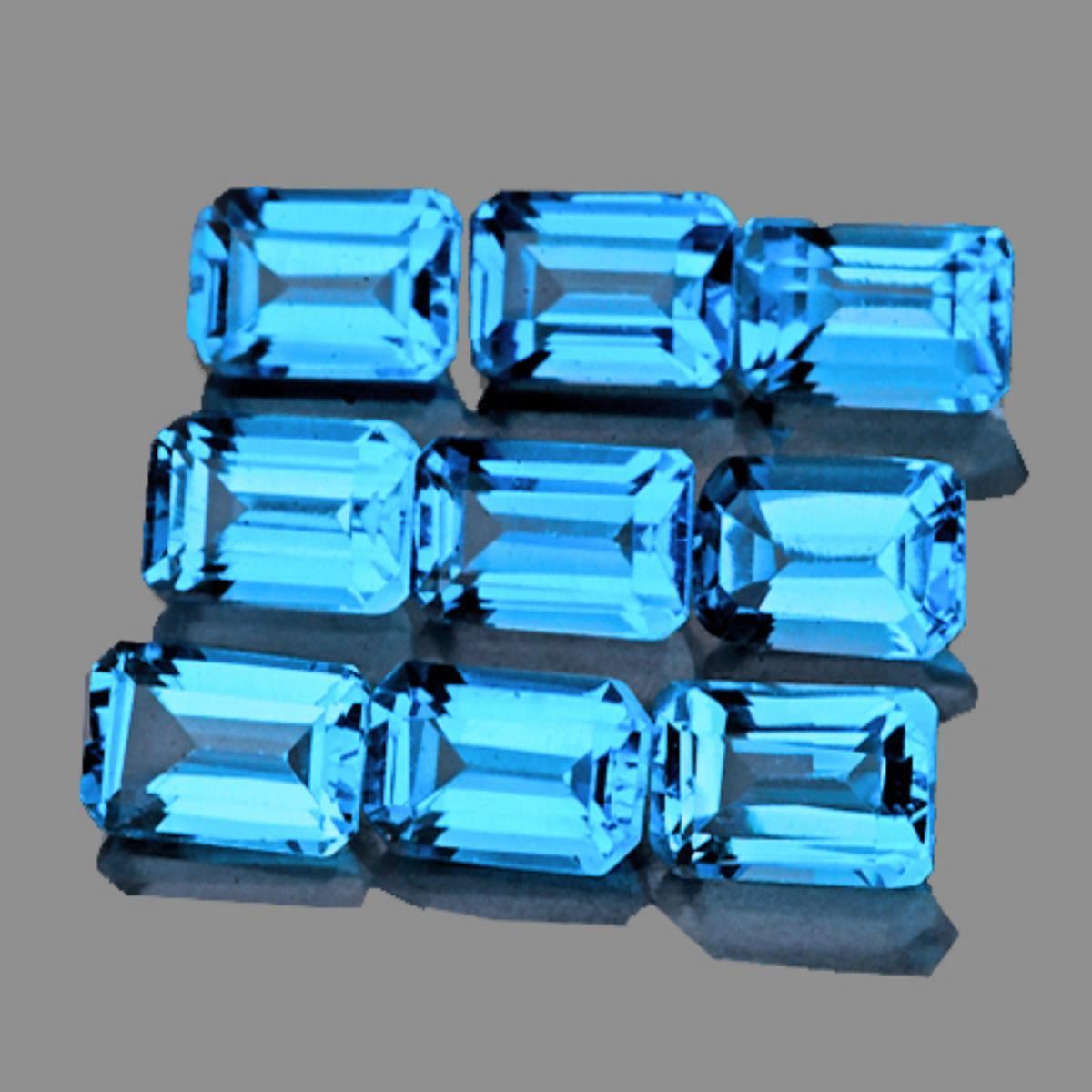 Natural Topaz WEIGHT : 5.85 cts SHAPE : Rectangle SIZE ( L x W x D ) : 6.00 x 4.00 mm QUANTITY : 9 pieces ( Perfectly Matched Set) COLOR : Swiss Blue CLARITY : Flawless-VVS1 ORIGIN : Brazil HARDNESS : 8 LUSTER : Excellent!!! TREATMENT : Heated