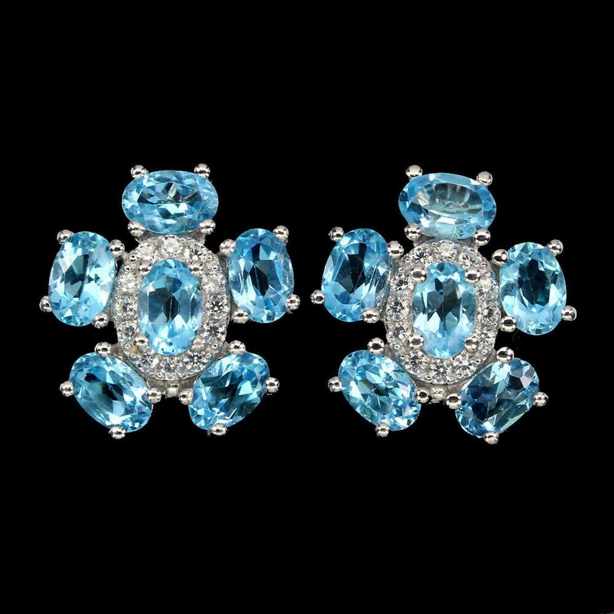925 STERLING SILVER;PLATE-14K WHITE GOLD;MAIN STONE-SWISS BLUE TOPAZ;OTHER GEMS-CUBIC ZIRCONIA;TOTAL WEIGHT-7.43 GRAM (TOTAL WEIGHT OF SILVER + STONE)DIMENSION* STONE 6.0 X 4.0 MM. * CZ 1.0 MM. * FACE EARRINGS 18.0 X 17.0 MM.;MAIN STONE SHAPE-OVAL CUT;MAIN STONE COLOR-TOP SWISS BLUE;CLARITY/GRADE-IF TO VVS;ORIGIN-AFRICA;HARDNESS-8;