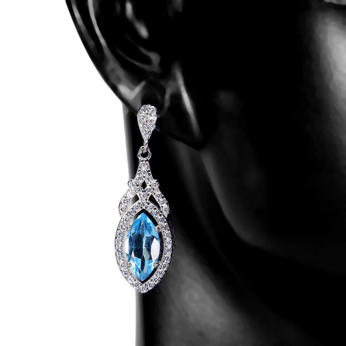 925 STERLING SILVER;PLATE-14K WHITE GOLD;MAIN STONE-SWISS BLUE TOPAZ;TOTAL WEIGHT-3.43 GRAM (TOTAL WEIGHT OF SILVER + STONE);DIMENSION-* STONE 10.0 X 5.0 MM.* FACE EARRINGS 28.0 X 9.0 MM.;MAIN STONE SHAPE-MARQUISE; MAIN STONE COLOR-SWISS BLUE;CLARITY/GRADE-IF TO VVS;TREATMENT-IRRADIATED;ORIGIN-AFRICA;HARDNESS-8.0;