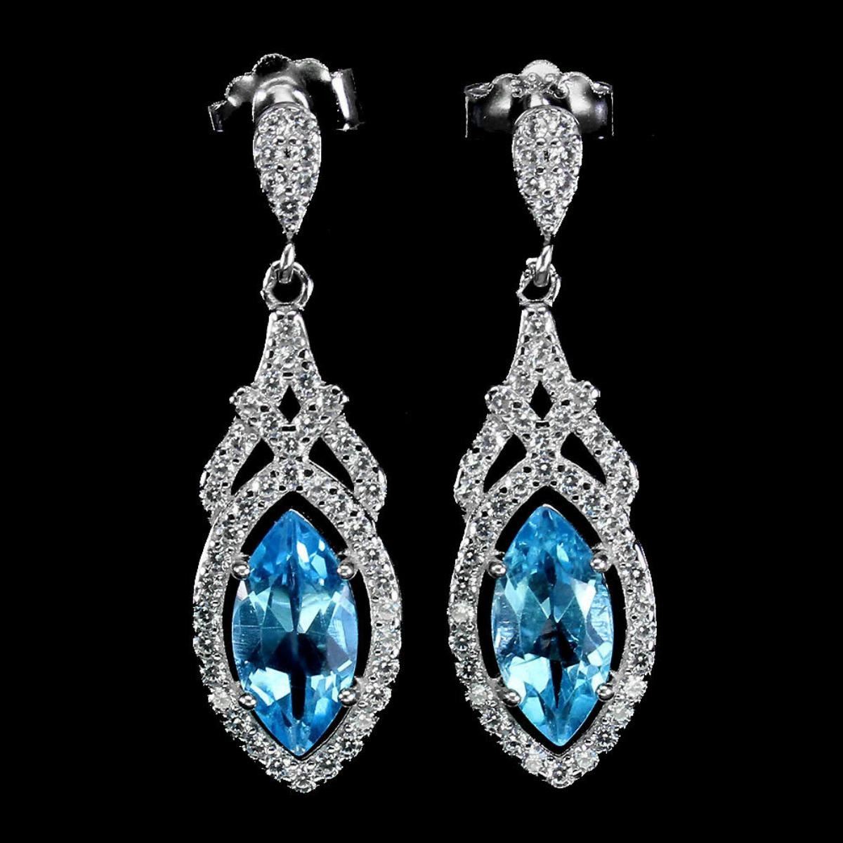 925 STERLING SILVER;PLATE-14K WHITE GOLD;MAIN STONE-SWISS BLUE TOPAZ;TOTAL WEIGHT-3.43 GRAM (TOTAL WEIGHT OF SILVER + STONE);DIMENSION-* STONE 10.0 X 5.0 MM.* FACE EARRINGS 28.0 X 9.0 MM.;MAIN STONE SHAPE-MARQUISE; MAIN STONE COLOR-SWISS BLUE;CLARITY/GRADE-IF TO VVS;TREATMENT-IRRADIATED;ORIGIN-AFRICA;HARDNESS-8.0;