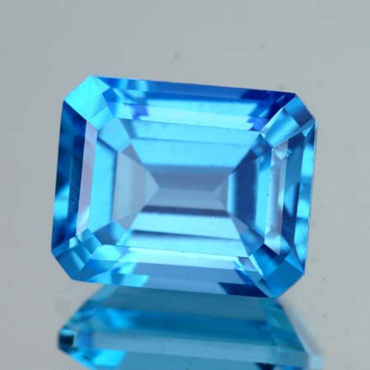Natural Topaz; SHAPE : Octagon; SIZE ( L x W x D ) : 9.02 x 7.03 x 4.68 mm; QUANTITY : 1 piece; COLOR : Swiss Blue ; CLARITY : Flawless-VVS; ORIGIN : Africa; HARDNESS : 8; LUSTER : Excellent; TREATMENT : Heated;
