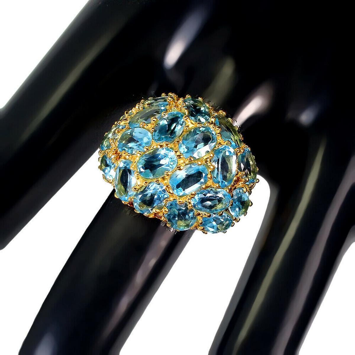 925 STERLING SILVER;PLATE-14K YELLOW GOLD;RING SIZE(resizeable)8;MAIN STONE-SWISS BLUE TOPAZ;OTHER GEMS-RHODOLITE GARNET;TOTAL WEIGHT-8.07 GRAM (TOTAL WEIGHT OF SILVER + STONE)DIMENSION-* STONE 1.5 TO 6.0 X 4.0 MM. * RING SIZE 8.0 * FACE RING -25.0 X 19.0 MM.;MAIN STONE SHAPE-OVAL CUT;MAIN STONE COLOR-TOP SWISS BLUE;CLARITY/GRADE-IF TO VVS;ORIGIN-AFRICA;HARDNESS-8;