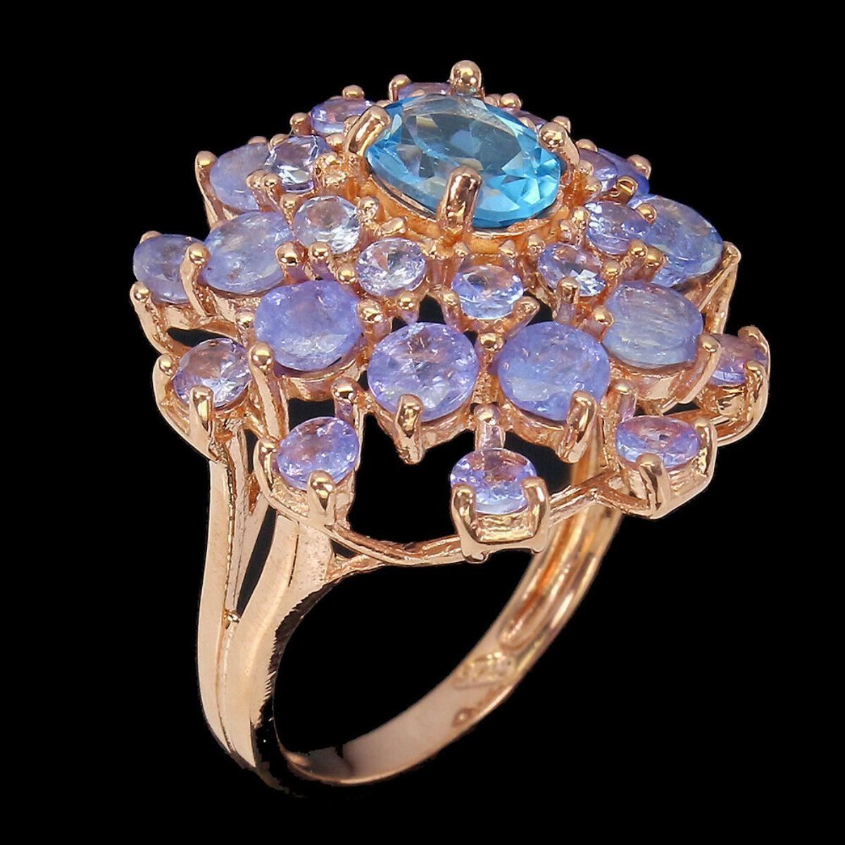 925 STERLING SILVER;PLATE-14K ROSE GOLD;RING SIZE-8(RESIZABLE);MAIN STONE-SWISS BLUE TOPAZ;OTHER GEMS-TANZANITE;TOTAL WEIGHT-7.6 GRAM (TOTAL WEIGHT OF SILVER + STONE);DIMENSION-* STONE 2.5 TO 8.0 X 6.0 MM. * RING SIZE 8.0 * FACE RING 25.0 X 22.0 MM.;MAIN STONE SHAPE-OVAL CUT;MAIN STONE COLOR-SWISS BLUE;CLARITY/GRADE-IF;TREATMENT-HEATED;ORIGIN-AFRICA;HARDNESS-8;