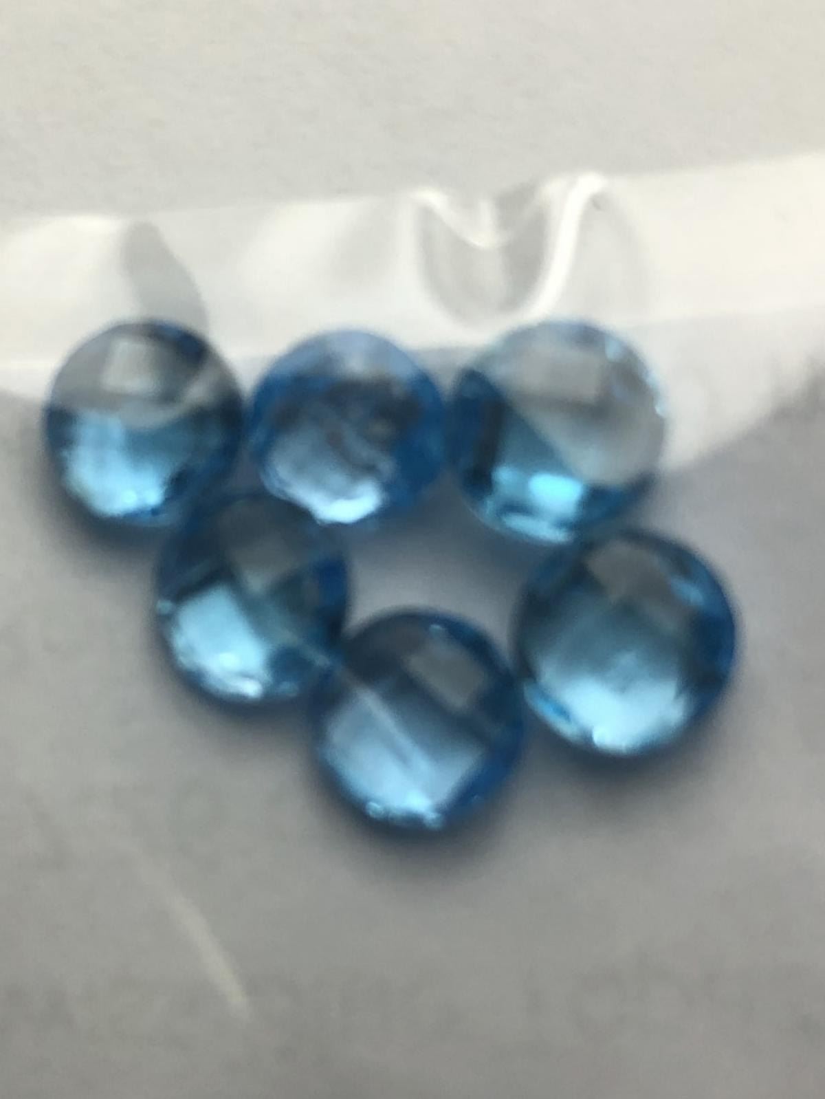 Natural Swiss Topaz Briolette Double Checker 6 Pcs......color - blue....VVS.....size 6.00 MM total weight 7.26 carats ....Origin - Brazil