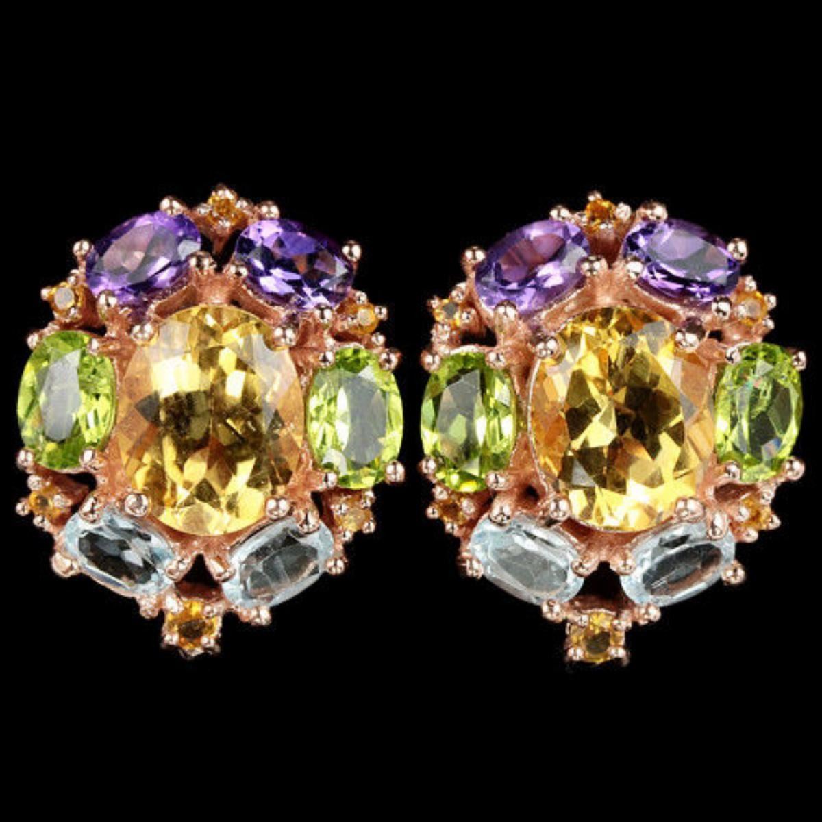 TOPAZ AMETHYST CITRINE & PERIDOT 925 SILVER EARRING 14K PINK GOLD COATING;STONE SHAPEOVAL & ROUNDSTONE DIMENSION11 X 9 MM. , 7 X 5 MM. , 6 X 4 MM. , 2.7 MM. & 1.7 MM.ITEM WEIGHT12.1 GRAMCOLORMULTI COLORCLARITYIF - VVSLUSTERDAZZLINGTREATMENTIRRADIATION & UNHEATEDORIGIN OF STONEAFRICA, BRAZIL & ASIAHARDNESS6.5 - 8FACE OF EARRING 24 X 19 MM.