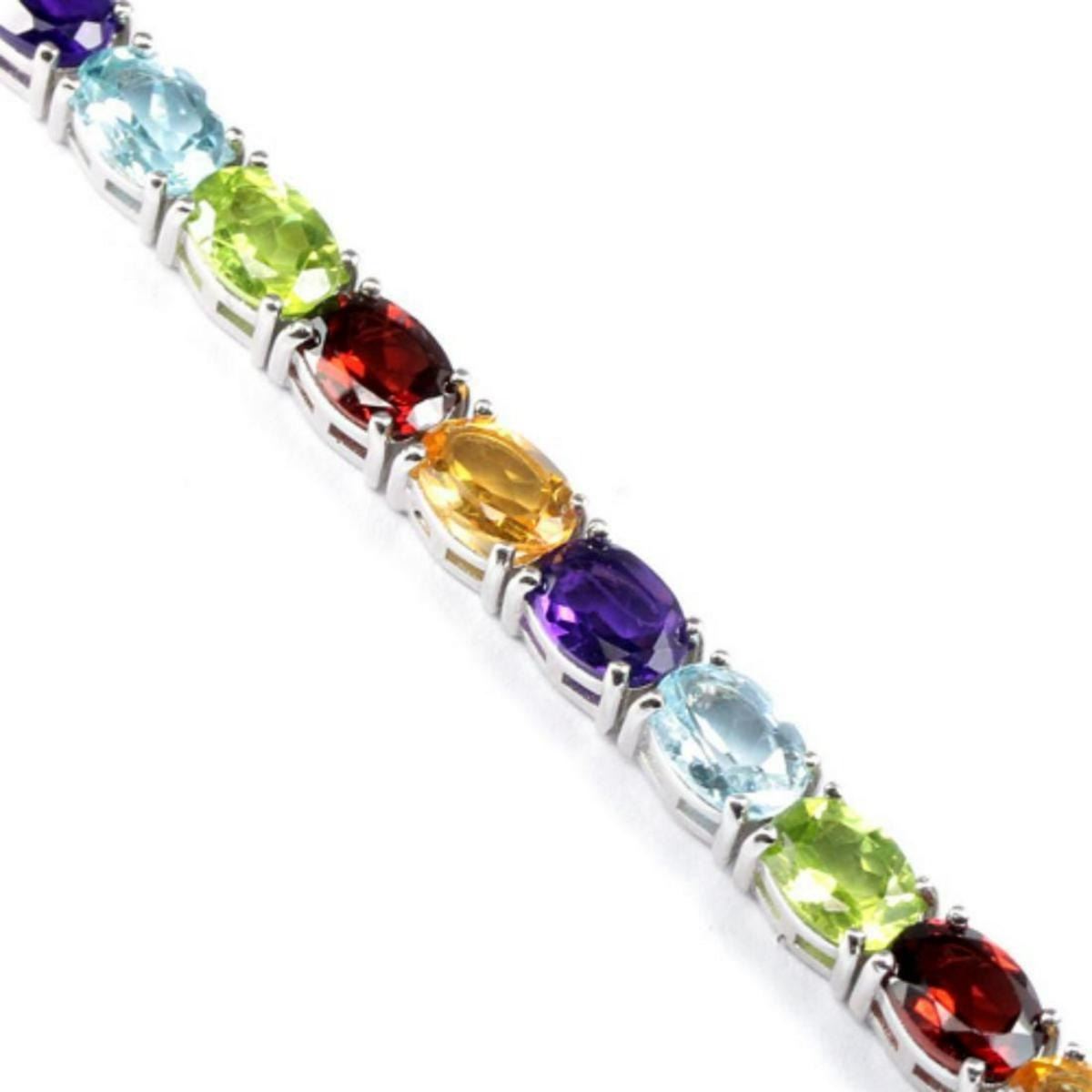 TOPAZ GARNET AMETHYST CITRINE 925 SILVER BRACELET 14K WHITE GOLD COATING; LENGTH OF ITEM (Inch.)7.50 ;ITEM QUANTITY1STONE SHAPEOVALSTONE DIMENSION7 X 5 MM.ITEM WEIGHT13.8 GRAM or (65 Carats pls)COLORMULTI COLORCLARITYIF - VVSLUSTERDAZZLINGTREATMENTIRRADIATION & UNHEATEDORIGIN OF STONEAFRICA, BRAZIL, ASIA & CAMBODIAHARDNESS6.5 - 8