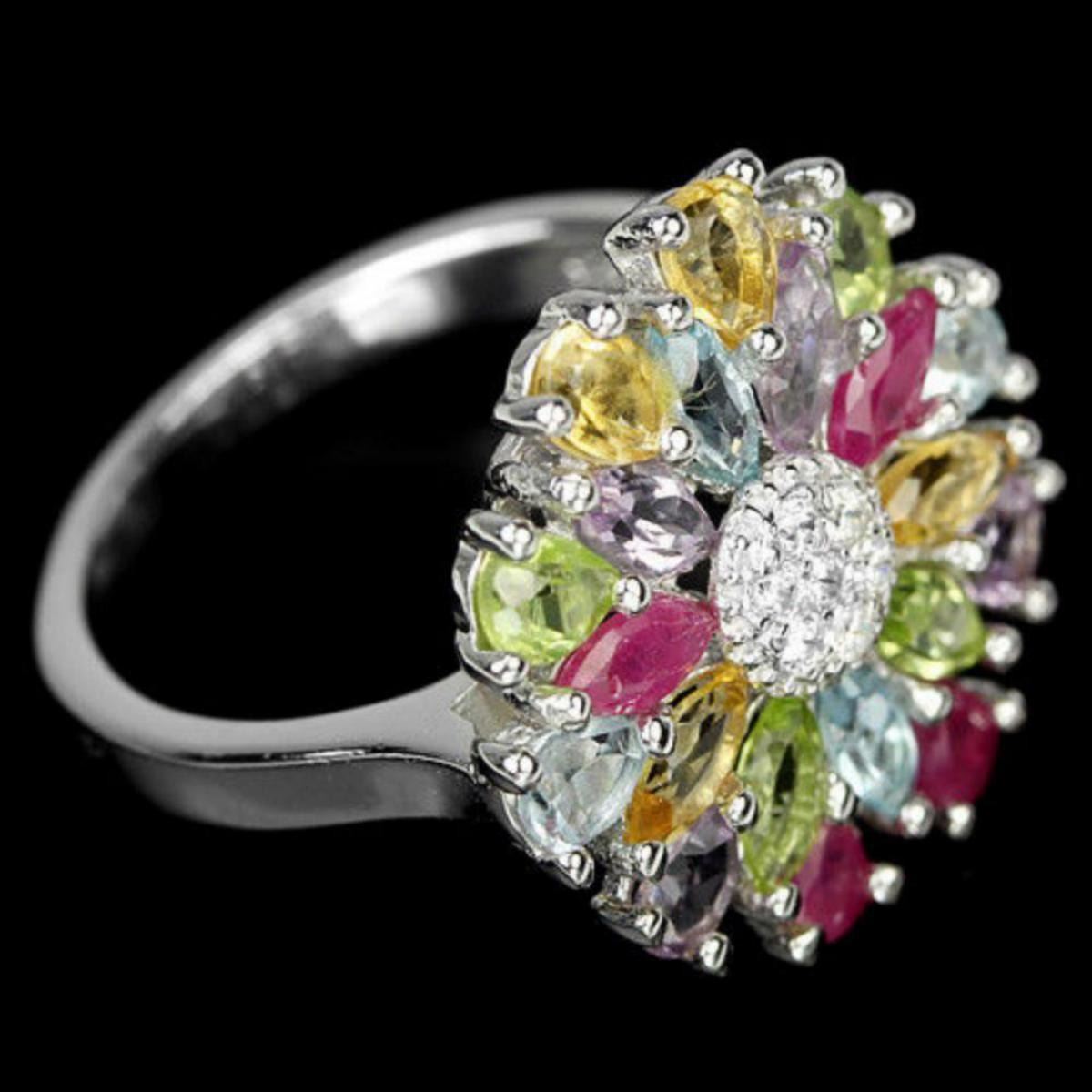 REAL TOPAZ RUBY AMETHYST CITRINE & CZ 925 SILVER RING 14K WHITE GOLD COATING; RING SIZE8.00 ( can be resized )ITEM QUANTITY1STONE SHAPEMARQUISE & PEARSTONE DIMENSION6 X 3 MM. & 4 X 3 MM.ITEM WEIGHT5.3 GRAMCOLORMULTI COLORCLARITYIF - VVSLUSTERDAZZLINGTREATMENTTRANLUCENT, IRRADIATION & UNHEATEDORIGIN OF STONEAFRICA, BRAZIL & ASIAHARDNESS6.5 - 9OTHERFACE OF RING 20 X 20 MM. WHITE CUBIC ZIRCONIA 1.5 MM.