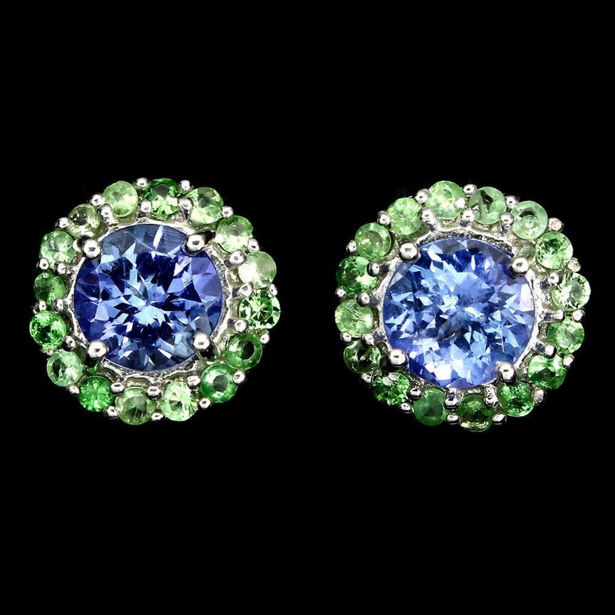 925 STERLING SILVER;PLATE-14K WHITE GOLD;MAIN STONE-TANZANITE;OTHER GEMS-TSAVORITE GARNET;TOTAL WEIGHT-2.64 GRAM (TOTAL WEIGHT OF SILVER + STONE)DIMENSION-* STONE 1.5 TO 6.0 MM. * FACE EARRINGS 10.0 X 10.0 MM.-MAIN STONE SHAPE-ROUND CUT;MAIN STONE COLOR-TOP RICH BLUE VIOLET;TREATMENT-UNHEATED;ORIGIN-TANZANIA - AFRICA;HARDNESS-7.0 - 7.5;