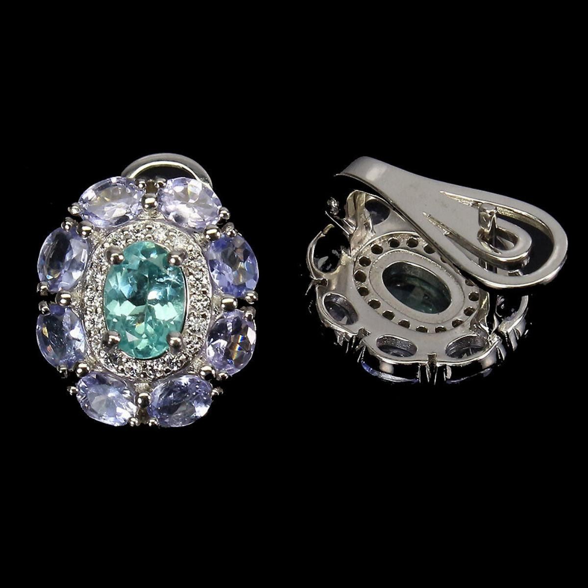 925 STERLING SILVER;PLATE-14K WHITE GOLD;MAIN STONE-APATITE;OTHER GEMS- TANZANITE;TOTAL WEIGHT-6.19 GRAM (TOTAL WEIGHT OF SILVER + STONE)DIMENSION-* STONE 4.0 X 3.0 TO 7.0 X 5.0 MM.;* FACE EARRINGS- 15.0 X 13.0 MM.;MAIN STONE SHAPE-OVAL CUT;CLARITY/GRADE-IF TO VVS;TREATMENT-UNHEATED;ORIGIN-AFRICA;HARDNESS-5;
