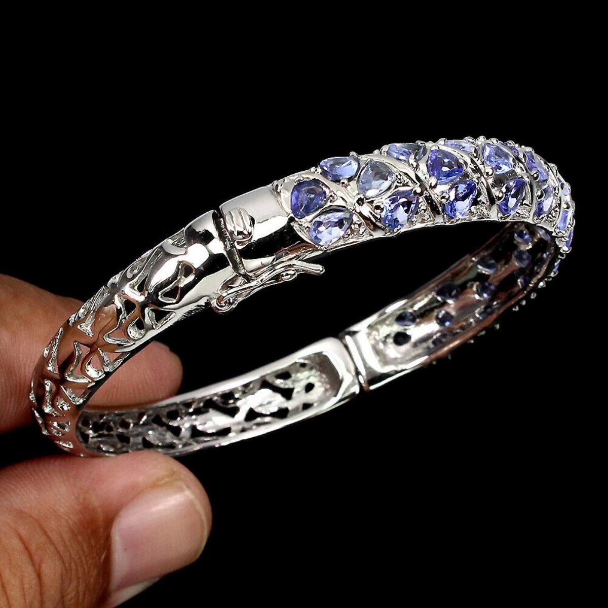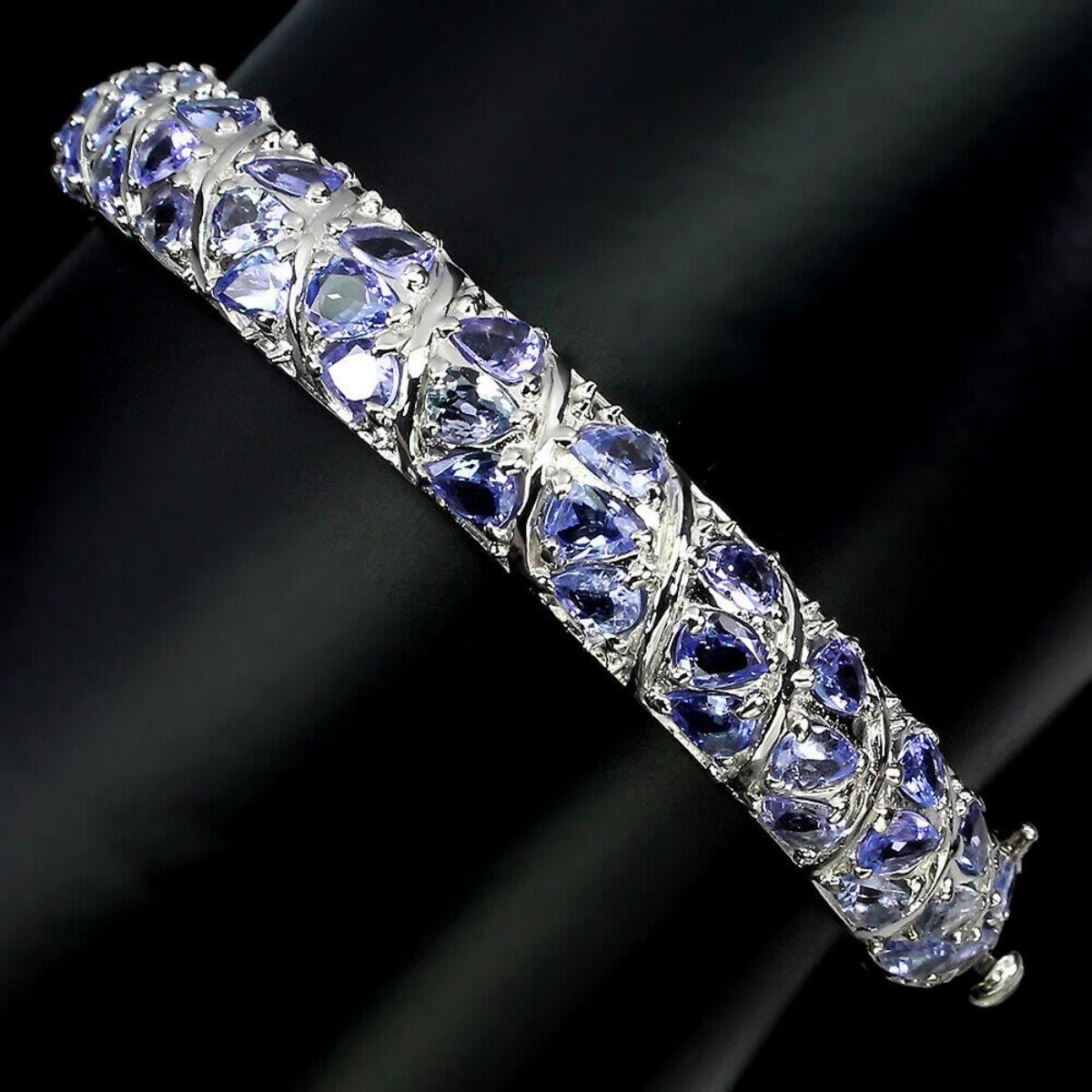 925 STERLING SILVER;PLATE-14K WHITE GOLD;MAIN STONE-TANZANITE;TOTAL WEIGHT-25.74 GRAM (TOTAL WEIGHT OF SILVER + STONE);DIMENSION- * STONE 5.0 X 4.0 MM.* DIAMETER 2.5 X 2.4 INCHES.* FACE BANGLE 69.0 X 10.0 MM.;MAIN STONE SHAPE-PEAR CUT;MAIN STONE COLOR- BLUE VIOLET;CLARITY/GRADE-IF TO VVS;TREATMENT-UNHEATED;ORIGIN-TANZANIA - AFRICA;HARDNESS-7.0 - 7.5;