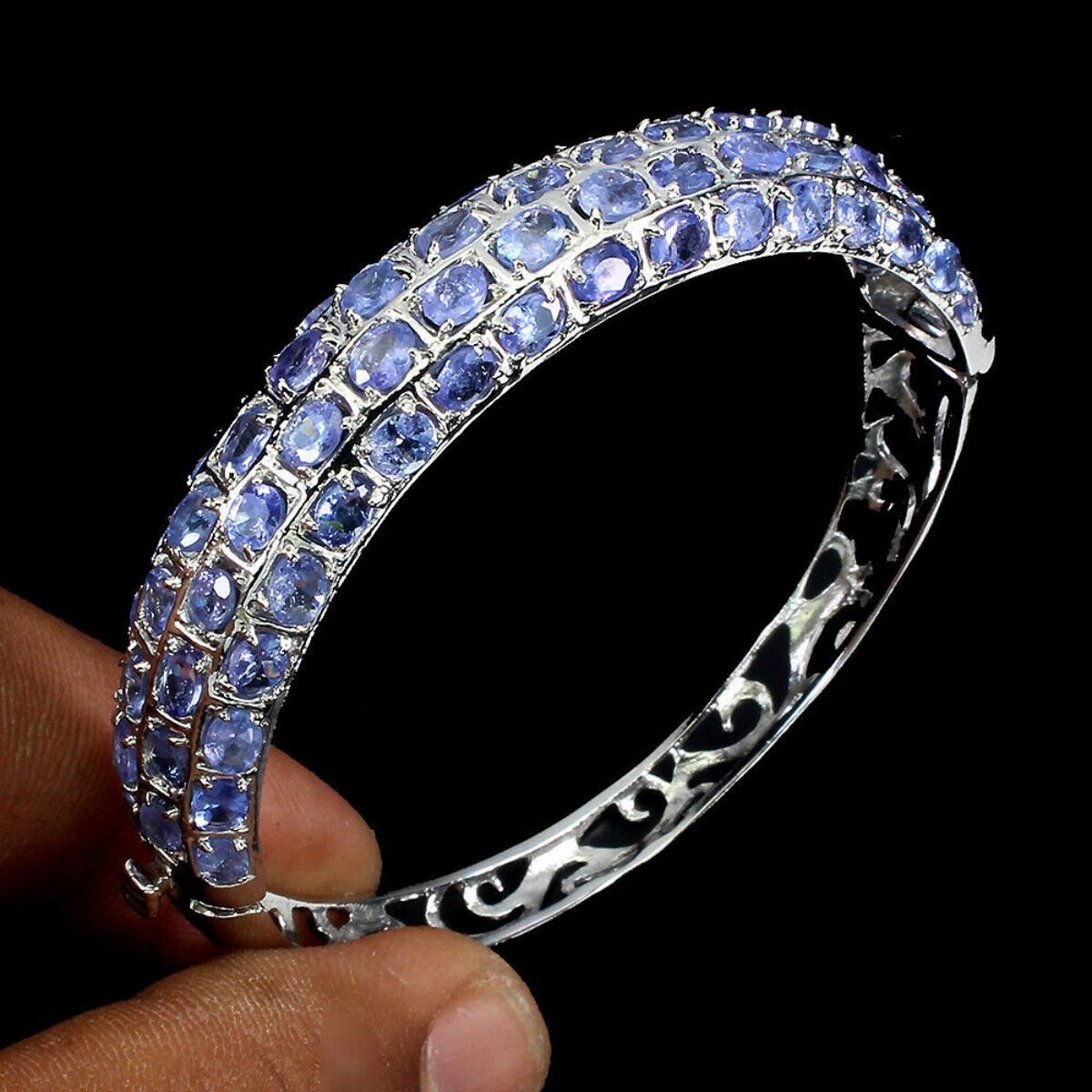 925 STERLING SILVER;PLATE-14K WHITE GOLD;MAIN STONE-TANZANITE;TOTAL WEIGHT-22.27 GRAM (TOTAL WEIGHT OF SILVER + STONE);DIMENSION-* STONE 4.0 X 3.0 MM.* DIAMETER 2.1 X 2.0 INCHES.* FACE BANGLE 63.0 X 12.0 MM.;MAIN STONE SHAPE-OVAL CUT;MAIN STONE COLOR - BLUE VIOLET;TREATMENT-UNHEATED;ORIGIN-TANZANIA - AFRICA;HARDNESS-7.0 - 7.5;
