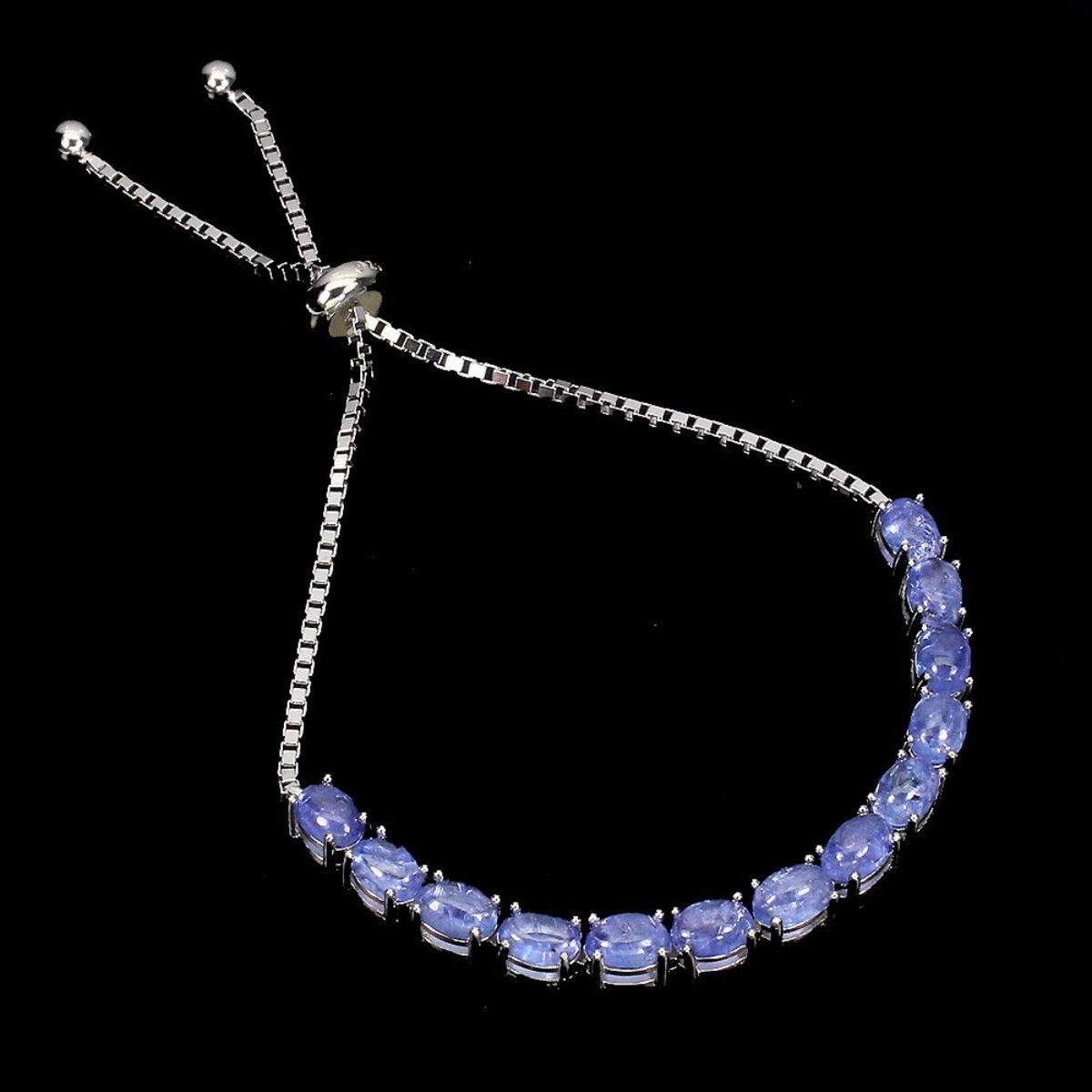 925 STERLING SILVER;PLATE-14K WHITE GOLD;LENGTH (INCHES)-9;MAIN STONE-TANZANITE;TOTAL WEIGHT-7.88 GRAM (TOTAL WEIGHT OF SILVER + STONE);DIMENSION-* STONE 6.0 X 4.0 MM.* TOTAL LENGTH 9.0 INCHES.* FACE BRACELET 85.0 X 4.0 MM.;MAIN STONE SHAPE-OVAL CABOCHON;MAIN STONE COLOR-BLUE VIOLET;TREATMENT-UNHEATED;ORIGIN-TANZANIA - AFRICA;HARDNESS-7.0 - 7.5;