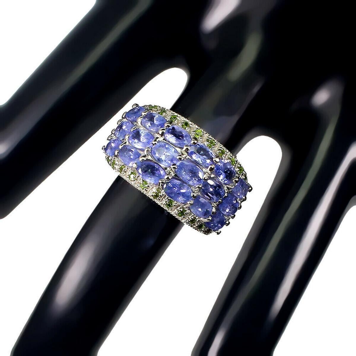 925 STERLING SILVER;PLATE-14K WHITE GOLD;RING SIZE(resizeable)7;MAIN STONE-TANZANITE;OTHER GEMS-CHROME DIOPSIDE;TOTAL WEIGHT-9.11 GRAM (TOTAL WEIGHT OF SILVER + STONE)DIMENSION-* STONE 1.0 TO 5.0 X 3.0 MM. * RING SIZE 7.0 * FACE RING -24.0 X 14.0 MM.;MAIN STONE SHAPE-OVAL CUT;MAIN STONE COLOR-TOP NICE BLUE VIOLET;TREATMENT-UNHEATED;ORIGIN-TANZANIA - AFRICA;HARDNESS-7.0 - 7.5;