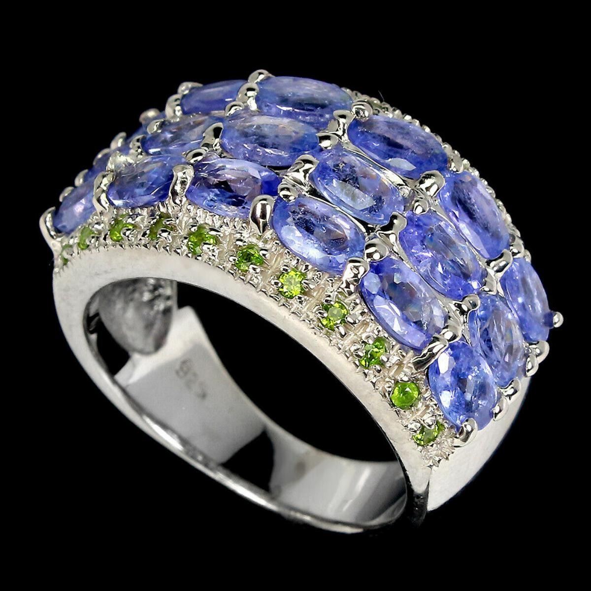 925 STERLING SILVER;PLATE-14K WHITE GOLD;RING SIZE(resizeable)7;MAIN STONE-TANZANITE;OTHER GEMS-CHROME DIOPSIDE;TOTAL WEIGHT-9.11 GRAM (TOTAL WEIGHT OF SILVER + STONE)DIMENSION-* STONE 1.0 TO 5.0 X 3.0 MM. * RING SIZE 7.0 * FACE RING -24.0 X 14.0 MM.;MAIN STONE SHAPE-OVAL CUT;MAIN STONE COLOR-TOP NICE BLUE VIOLET;TREATMENT-UNHEATED;ORIGIN-TANZANIA - AFRICA;HARDNESS-7.0 - 7.5;