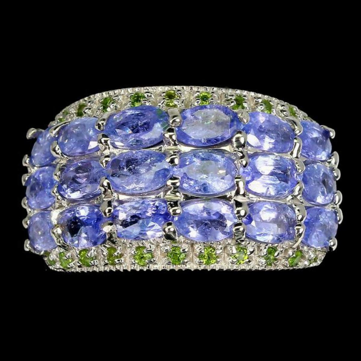 925 STERLING SILVER;PLATE-14K WHITE GOLD;RING SIZE(resizeable)7;MAIN STONE-TANZANITE;OTHER GEMS-CHROME DIOPSIDE;TOTAL WEIGHT-9.11 GRAM (TOTAL WEIGHT OF SILVER + STONE)DIMENSION-* STONE 1.0 TO 5.0 X 3.0 MM. * RING SIZE 7.0 * FACE RING -24.0 X 14.0 MM.;MAIN STONE SHAPE-OVAL CUT;MAIN STONE COLOR-TOP NICE BLUE VIOLET;TREATMENT-UNHEATED;ORIGIN-TANZANIA - AFRICA;HARDNESS-7.0 - 7.5;