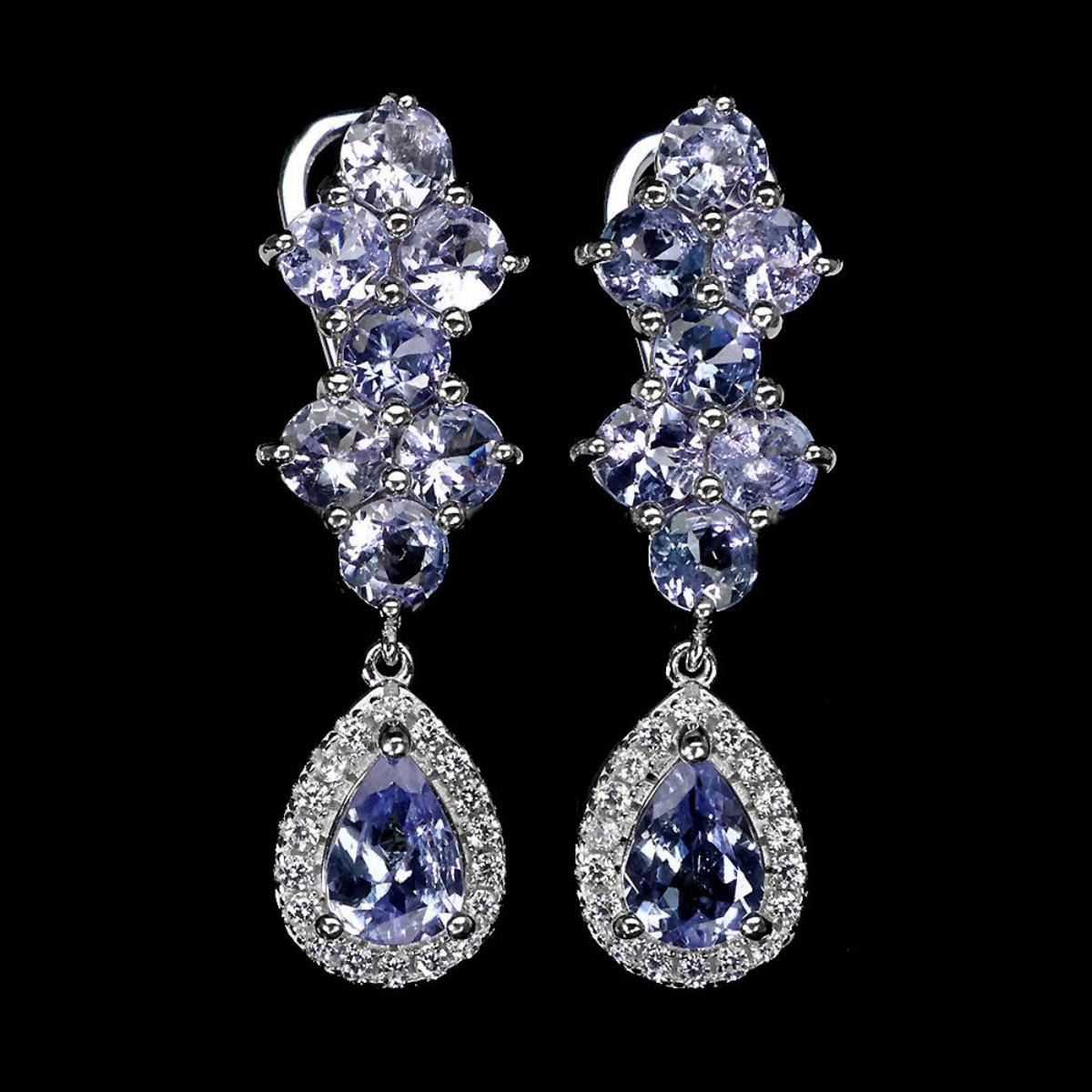 925 STERLING SILVER;PLATE-14K WHITE GOLD;MAIN STONE-TANZANITE;TOTAL WEIGHT-6.81 GRAM (TOTAL WEIGHT OF SILVER + STONE);DIMENSION- * STONE 4.0 TO 7.0 X 5.0 MM.* FACE EARRINGS 32.0 X 10.0 MM.;MAIN STONE SHAPE-PEAR CUT;MAIN STONE COLOR-BLUE VIOLET;CLARITY/GRADE-IF TO VVS;TREATMENT-UNHEATED;ORIGIN-TANZANIA - AFRICA;HARDNESS-7.0 - 7.5;
