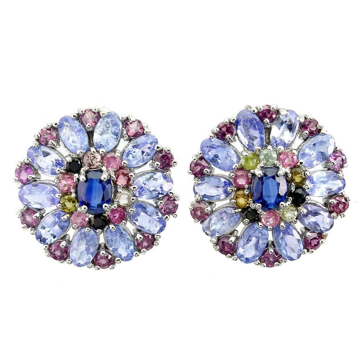 925 STERLING SILVER;PLATE-14K WHITE GOLD;MAIN STONE-TANZANITE;OTHER GEMS-KYANITE, RHODOLITE GARNET, TOURMALINE;TOTAL WEIGHT-6.06 GRAM (TOTAL WEIGHT OF SILVER + STONE)DIMENSION-* STONE 2.0 TO 5.0 X 4.0 MM. * FACE EARRINGS 20.0 X 20.0 MM.;MAIN STONE SHAPE-OVAL CUT;MAIN STONE COLOR-BLUE VIOLET;TREATMENT-UNHEATED;ORIGIN-TANZANIA - AFRICA;HARDNESS-7.0 - 7.5;