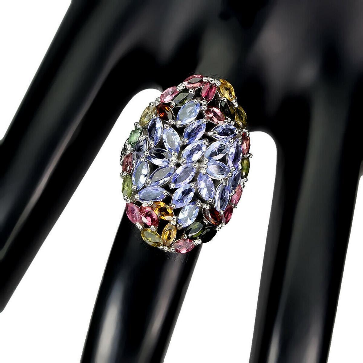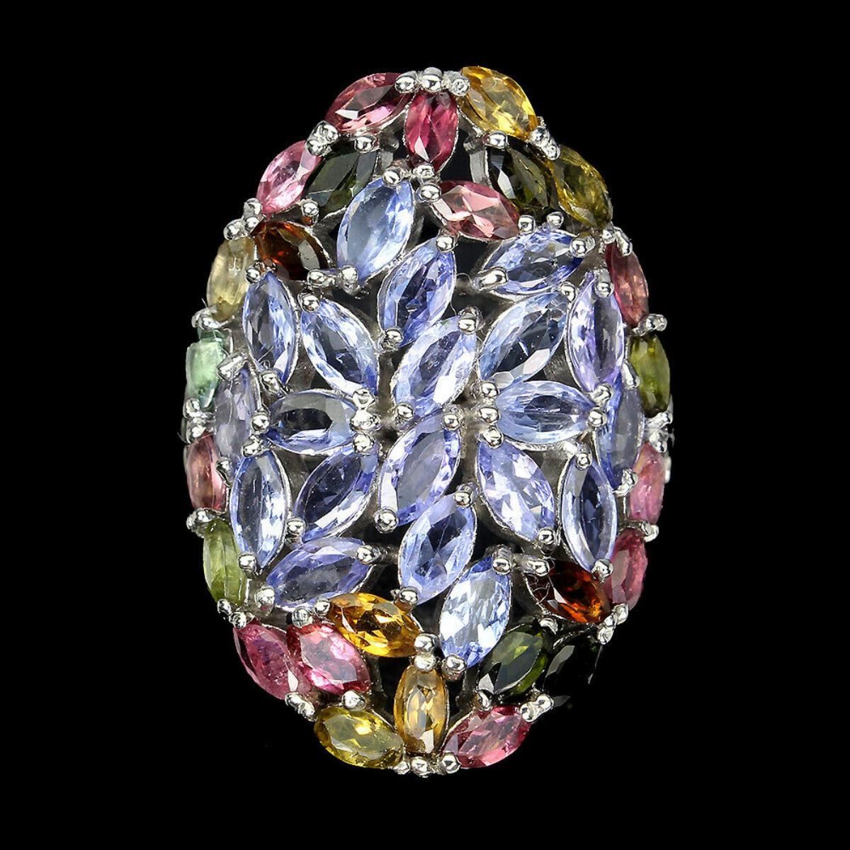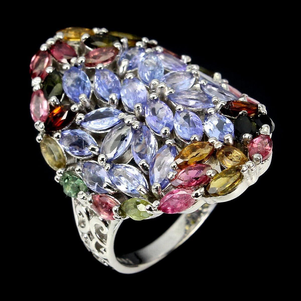925 STERLING SILVER;PLATE-14K WHITE GOLD;RING SIZE/resizable-8;MAIN STONE-TANZANITE;OTHER GEMS-TOURMALINE;TOTAL WEIGHT-6.05 GRAM (TOTAL WEIGHT OF SILVER + STONE)DIMENSION-* STONE 4.0 X 2.0 TO 5.0 X 2.5 MM. * RING SIZE 8.0 * FACE RING -28.0 X 20.0 MM.;MAIN STONE SHAPE-MARQUISE CUT;MAIN STONE COLOR- BLUE VIOLET;CLARITY/GRADE-IF;TREATMENT-UNHEATEDORIGIN-TANZANIA - AFRICAHARDNESS-7;