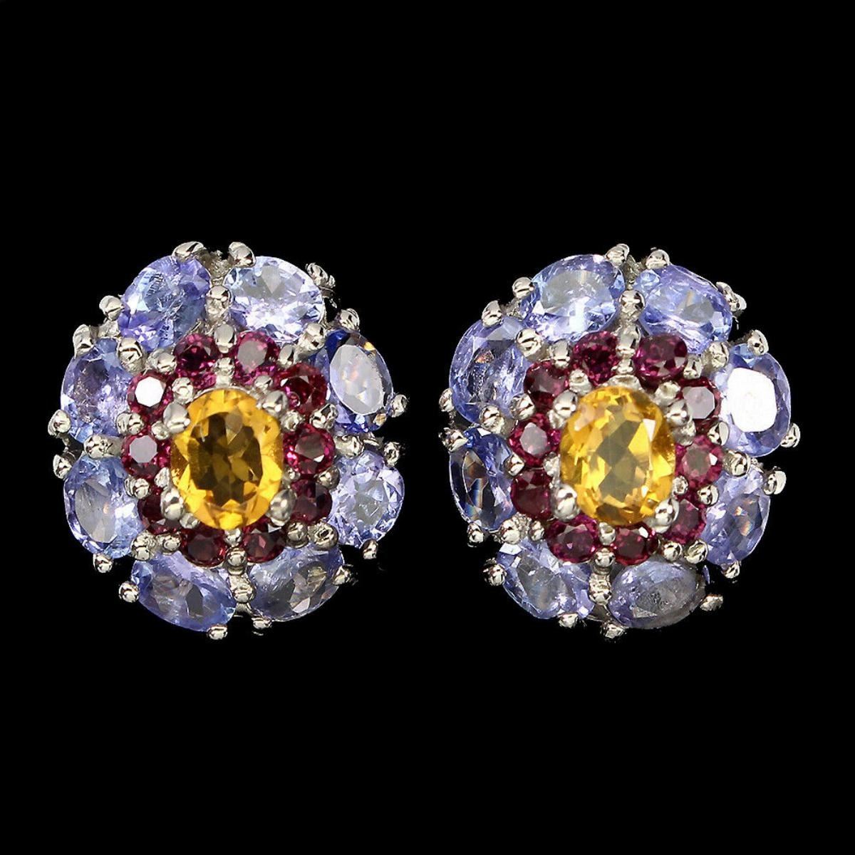 925 STERLING SILVER;PLATE-14K WHITE GOLD;MAIN STONE-CITRINE;OTHER GEMS-RHODOLITE GARNET, TANZANITE;TOTAL WEIGHT-6.38 GRAM (TOTAL WEIGHT OF SILVER + STONE)DIMENSION-* STONE 2.0 TO 5.0 X 4.0 MM. * FACE EARRINGS 15.0 X 14.0 MM.;MAIN STONE SHAPE-OVAL CUT;MAIN STONE COLOR-TOP RICH YELLOW;CLARITY/GRADE-IF TO VVS;TREATMENT-UNHEATED;ORIGIN-BRAZIL;