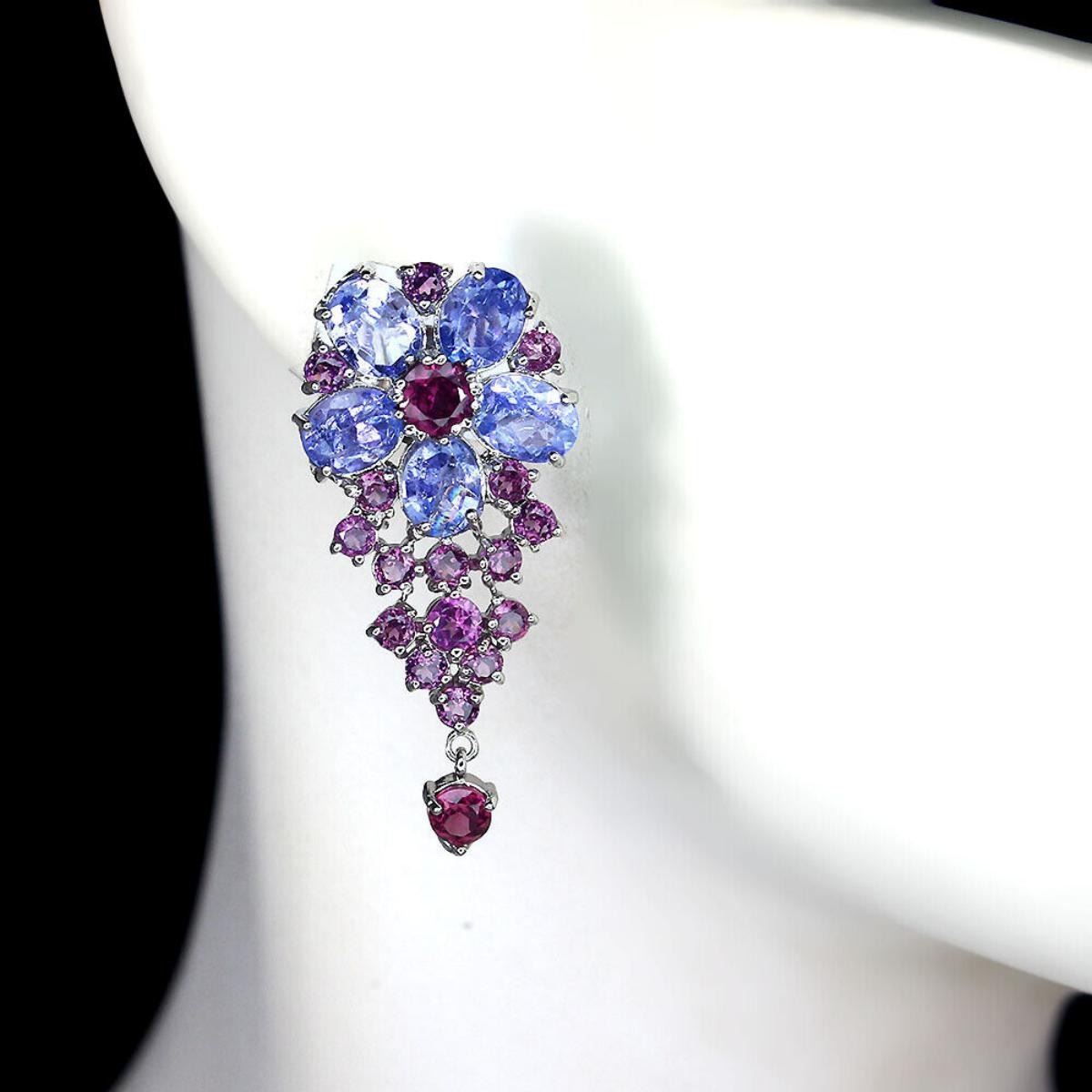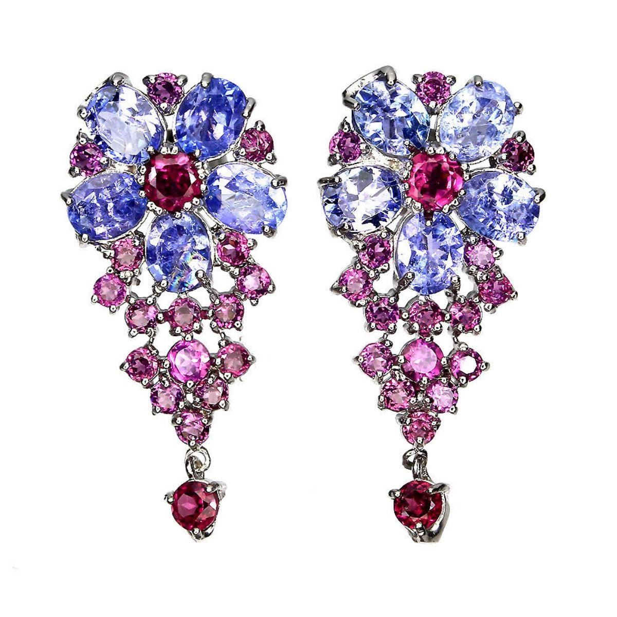 925 STERLING SILVER;PLATE-14K WHITE GOLD;MAIN STONE-TANZANITE;OTHER GEMS-RHODOLITE GARNET;TOTAL WEIGHT-5.13 GRAM (TOTAL WEIGHT OF SILVER + STONE);DIMENSION-* STONE 2.0 TO 5.0 X 4.0 MM.* FACE EARRINGS 29.0 X 14.0 MM.;MAIN STONE SHAPE-OVAL; MAIN STONE COLOR-BLUE VIOLET;TREATMENT-UNHEATED;ORIGIN-TANZANIA - AFRICA;HARDNESS-7.0 - 7.5;