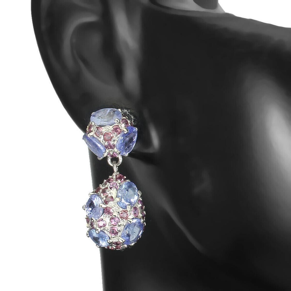 925 STERLING SILVER;PLATE-14K WHITE GOLD;MAIN STONE-TANZANITE;OTHER GEMS-RHODOLITE GARNET;TOTAL WEIGHT-4.09 GRAM (TOTAL WEIGHT OF SILVER + STONE)DIMENSION-* STONE 1.5 TO 5.0 X 4.0 MM.;* FACE EARRINGS- 24.0 X 11.0 MM.;MAIN STONE SHAPE-- BLUE VIOLET;TREATMENT-UNHEATED;ORIGINTANZANIA - AFRICA;