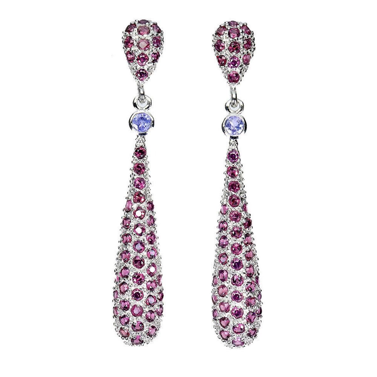 925 STERLING SILVER;PLATE-14K WHITE GOLD;MAIN STONE-TANZANITE;OTHER GEMS-RHODOLITE GARNET;TOTAL WEIGHT-9.11 GRAM (TOTAL WEIGHT OF SILVER + STONE);DIMENSION-* STONE 2.0 TO 3.5 MM.* FACE EARRINGS 58.0 X 9.0 MM.;MAIN STONE SHAPE-ROUND;MAIN STONE COLOR-BLUE VIOLET;CLARITY/GRADE-IF TO VVS;TREATMENT-UNHEATED;ORIGIN-TANZANIA - AFRICA;