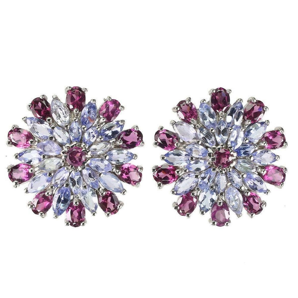 925 STERLING SILVER;PLATE-14K WHITE GOLD;MAIN STONE-TANZANITE;OTHER GEMS-RHODOLITE GARNET;TOTAL WEIGHT-7.49 GRAM (TOTAL WEIGHT OF SILVER + STONE)DIMENSION-* STONE 3.0 TO 5.0 X 2.5 MM. * FACE EARRINGS 22.0 X 22.0 MM.;MAIN STONE SHAPE-MARQUISE CUT;MAIN STONE COLOR-TOP NICE BLUE VIOLET;CLARITY/GRADE-IF TO VVS;-TREATMENT-UNHEATED;ORIGIN-TANZANIA - AFRICA;HARDNESS-7.0 - 7.5;