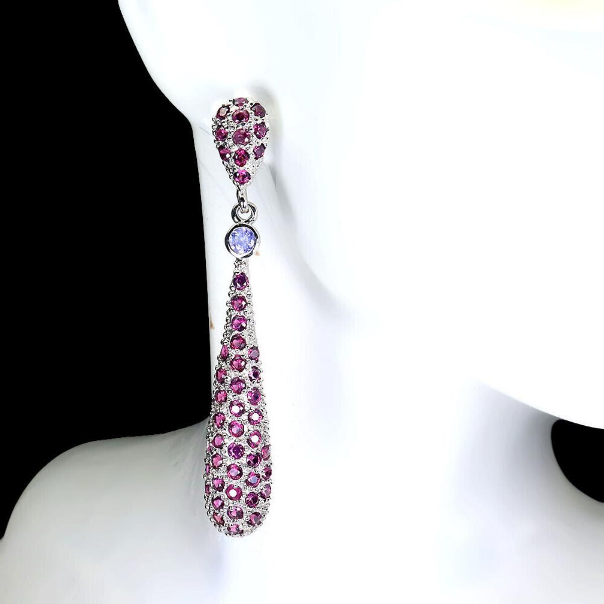925 STERLING SILVER;PLATE-14K WHITE GOLD;MAIN STONE-TANZANITE;OTHER GEMS-RHODOLITE GARNET;TOTAL WEIGHT-9.11 GRAM (TOTAL WEIGHT OF SILVER + STONE);DIMENSION-* STONE 2.0 TO 3.5 MM.* FACE EARRINGS 58.0 X 9.0 MM.;MAIN STONE SHAPE-ROUND;MAIN STONE COLOR-BLUE VIOLET;CLARITY/GRADE-IF TO VVS;TREATMENT-UNHEATED;ORIGIN-TANZANIA - AFRICA;